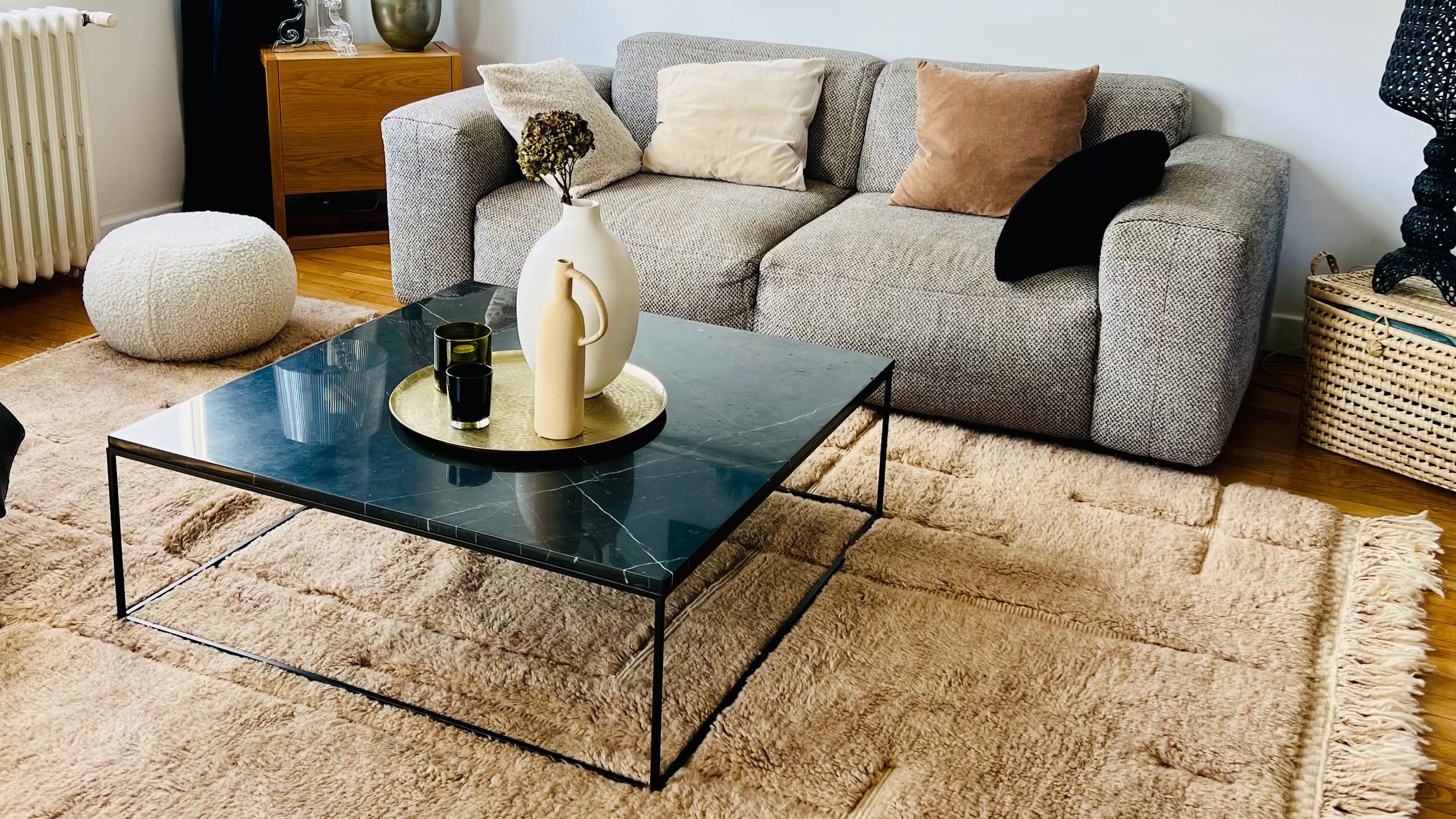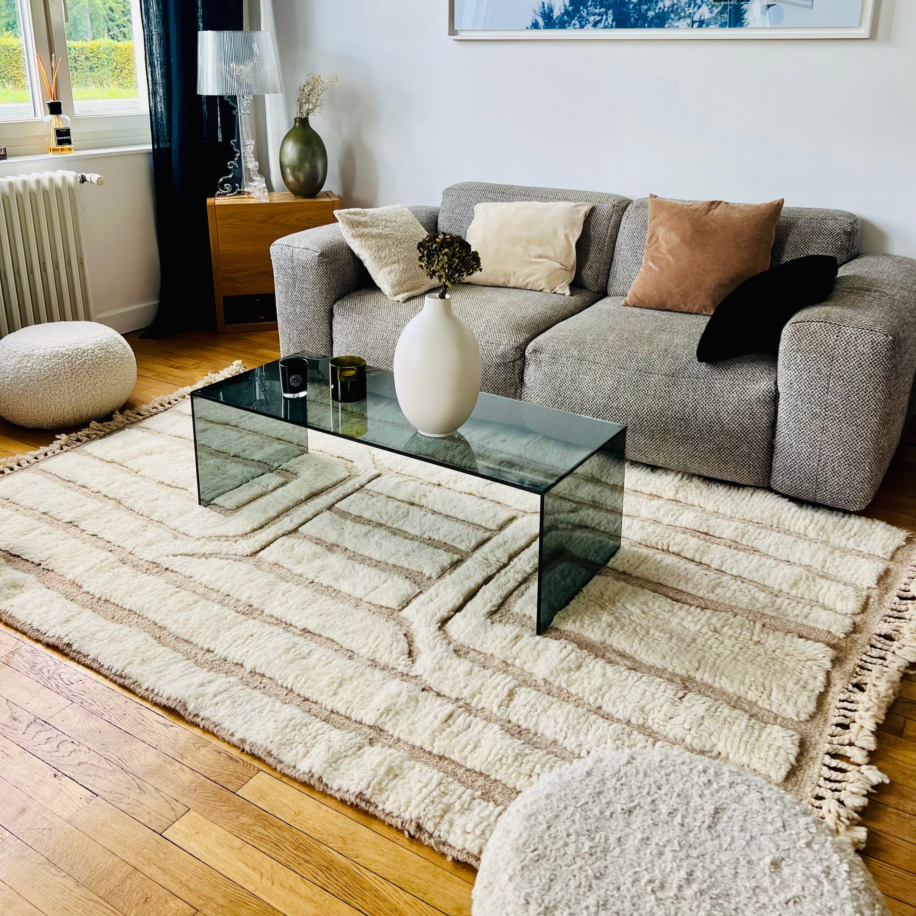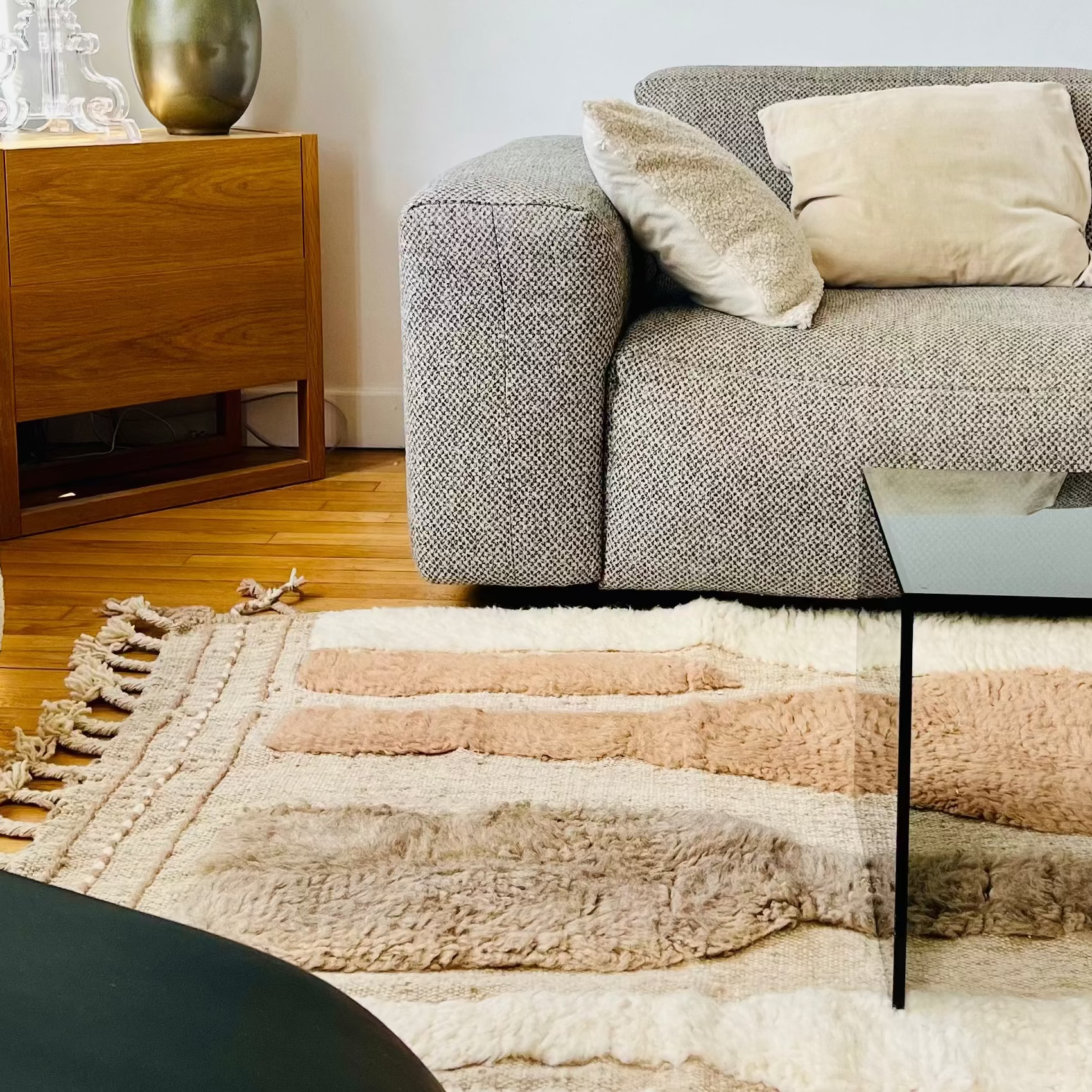 Je sélectionne personnellement chaque tapis en collaboration avec un artisan local. Cette démarche garantit des créations uniques, authentiques et respectueuses du travail artisanal.