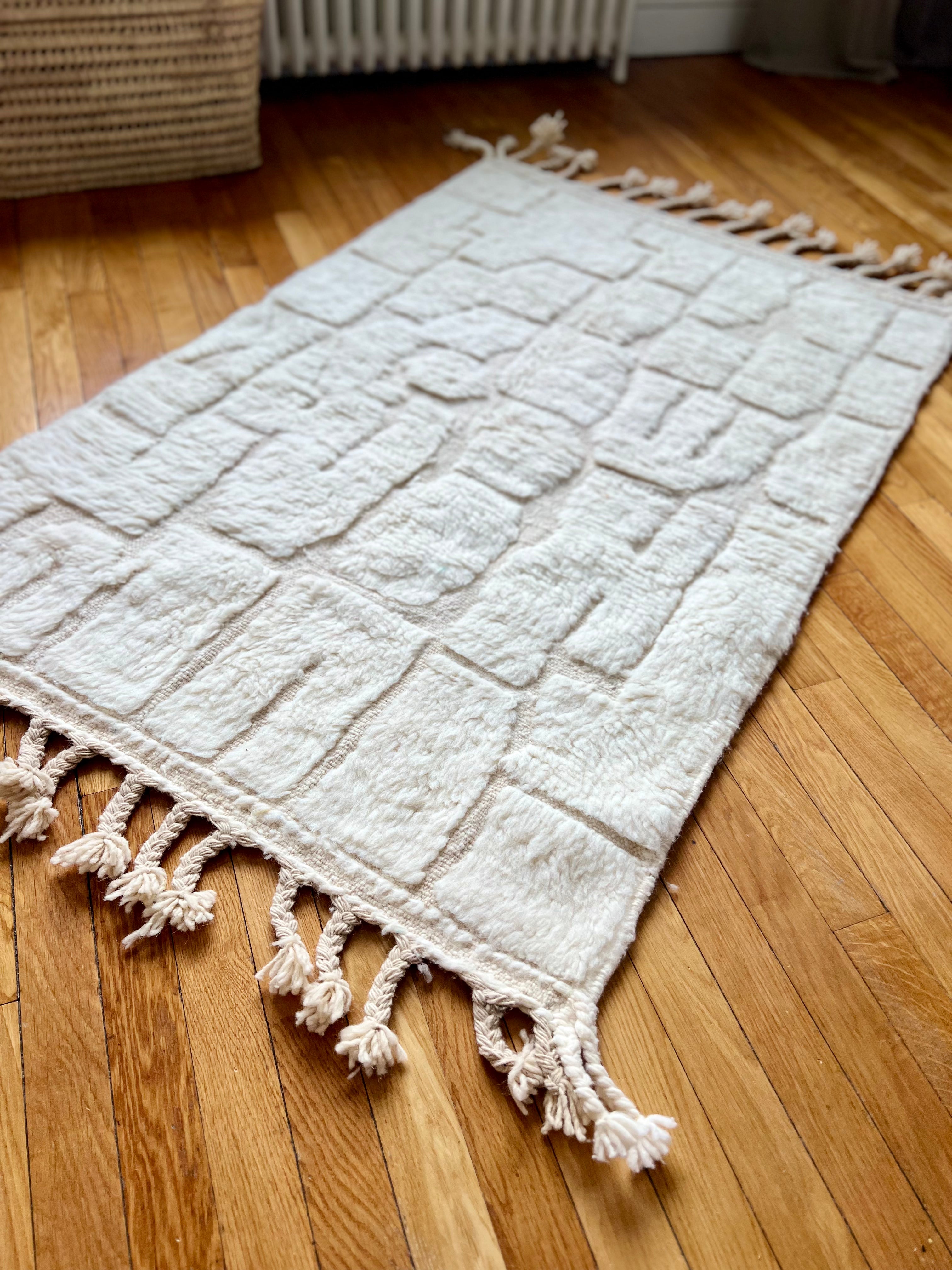Le tapis Pixel berbère est une création artisanale tissée à la main en laine naturelle. Son motif en relief, inspiré de pavés ou de pixels, lui donne une personnalité contemporaine tout en conservant l’authenticité de l’art berbère.