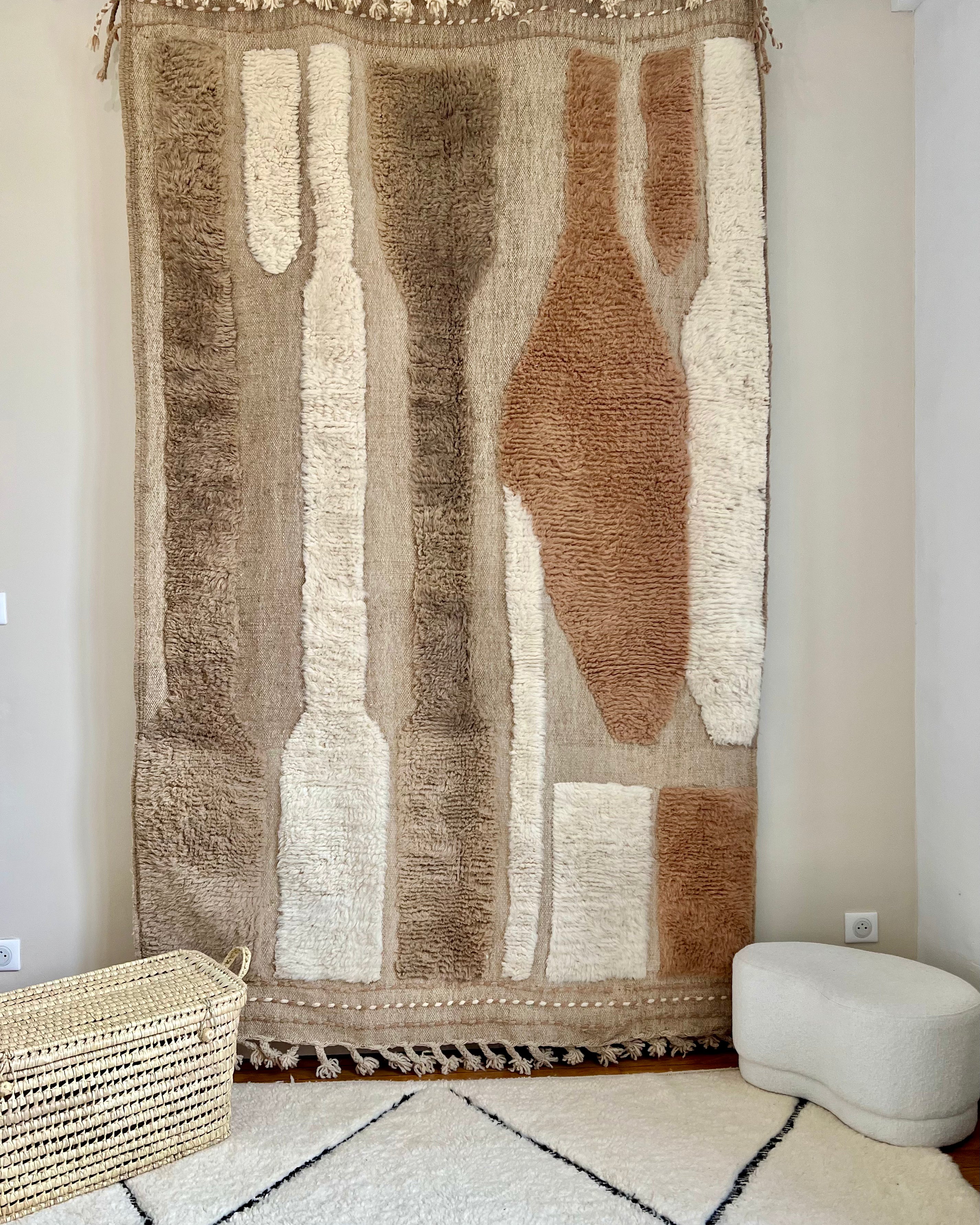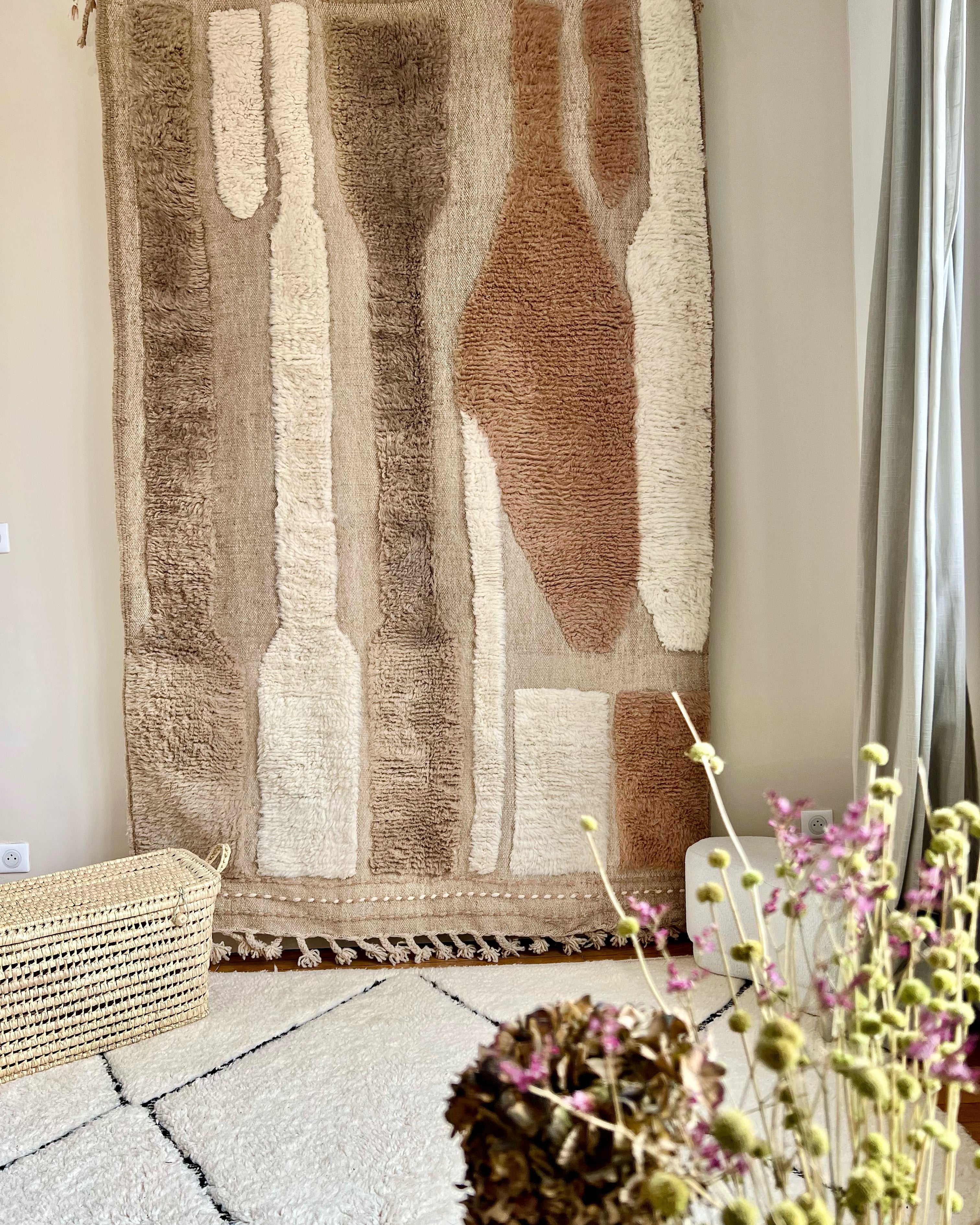Chez A. et cetera… chaque tapis est bien plus qu’un objet de décoration. Ce sont des pièces rares, tissées à la main pendant des semaines parfois plusieurs mois par ces femmes berbères qui transmettent à travers leurs motifs des histoires et des traditions.