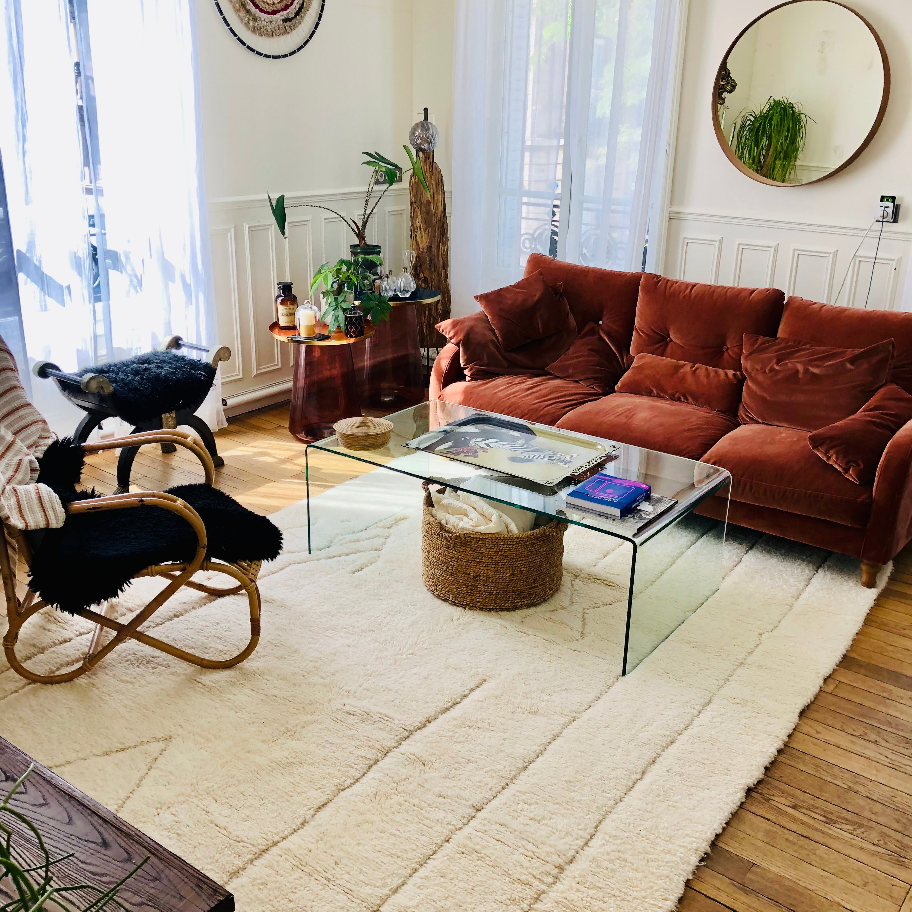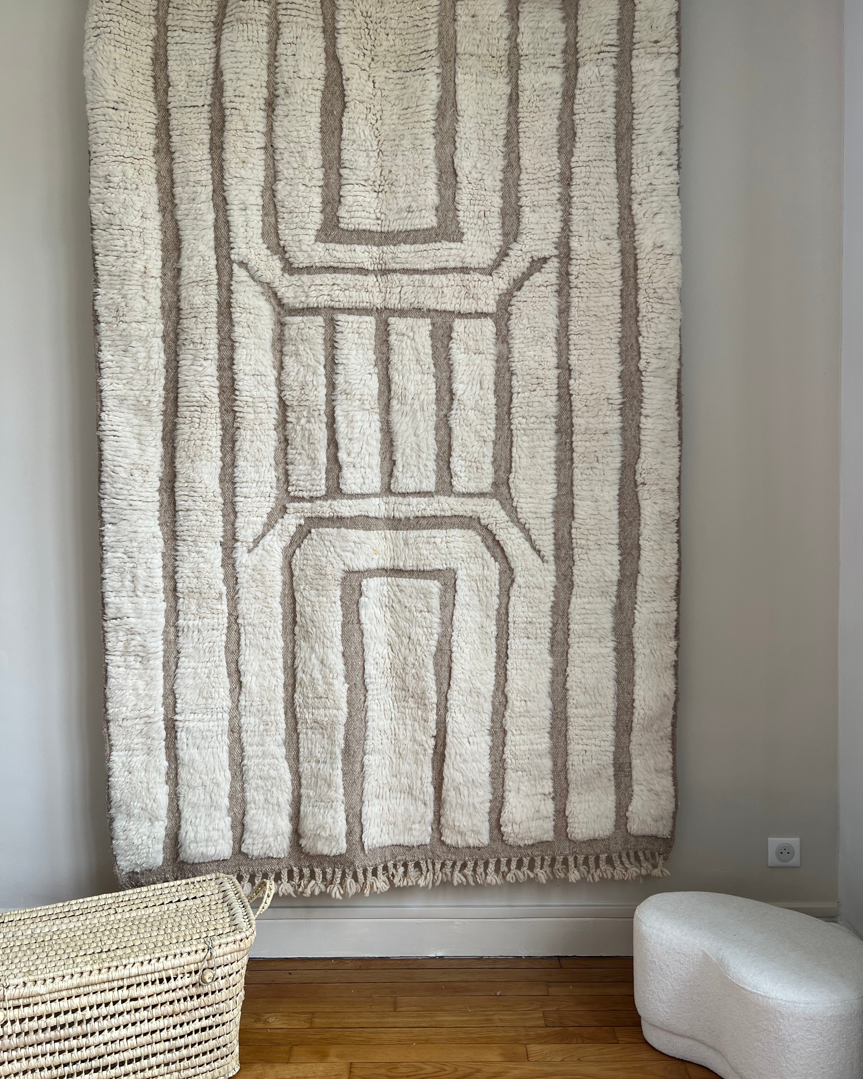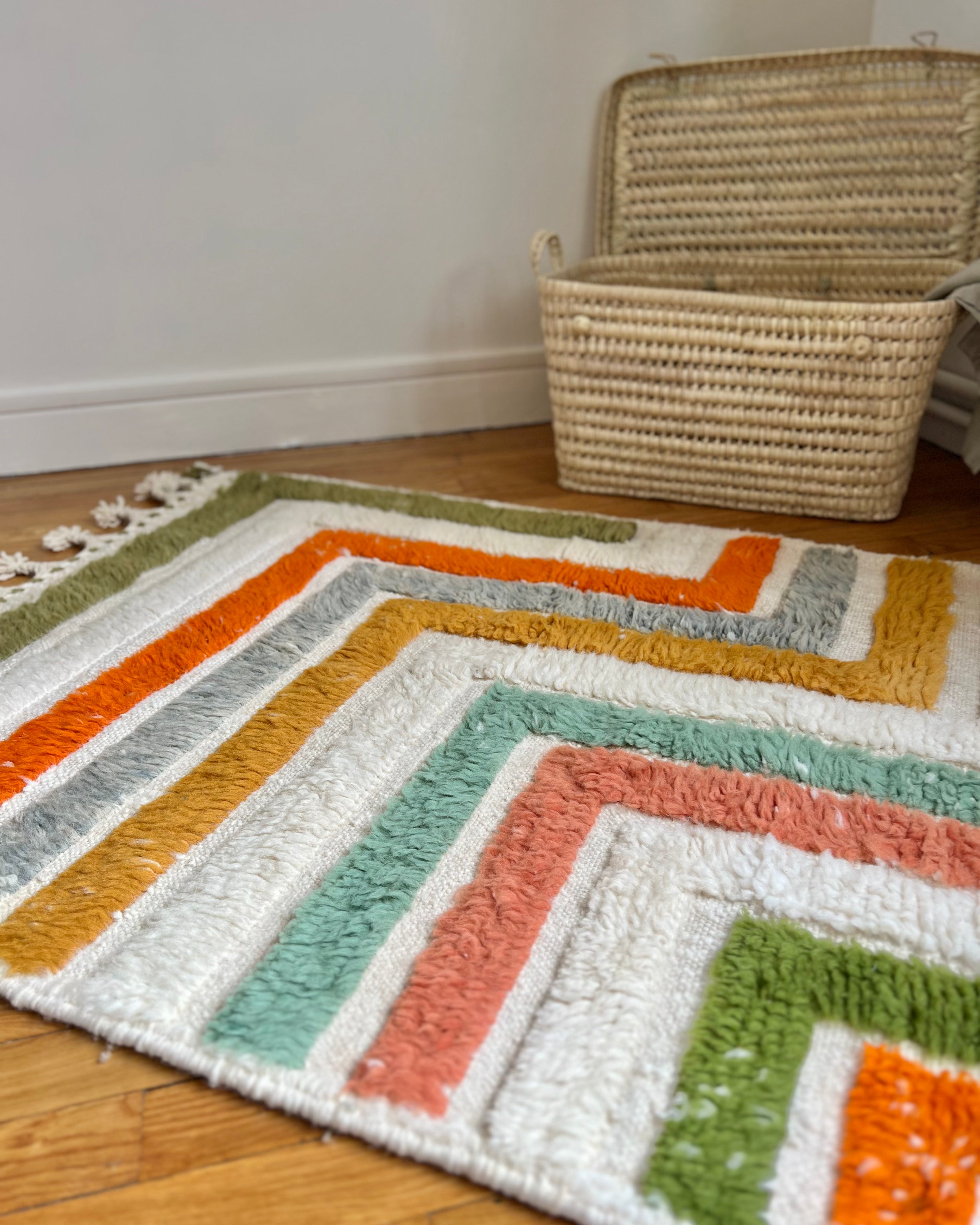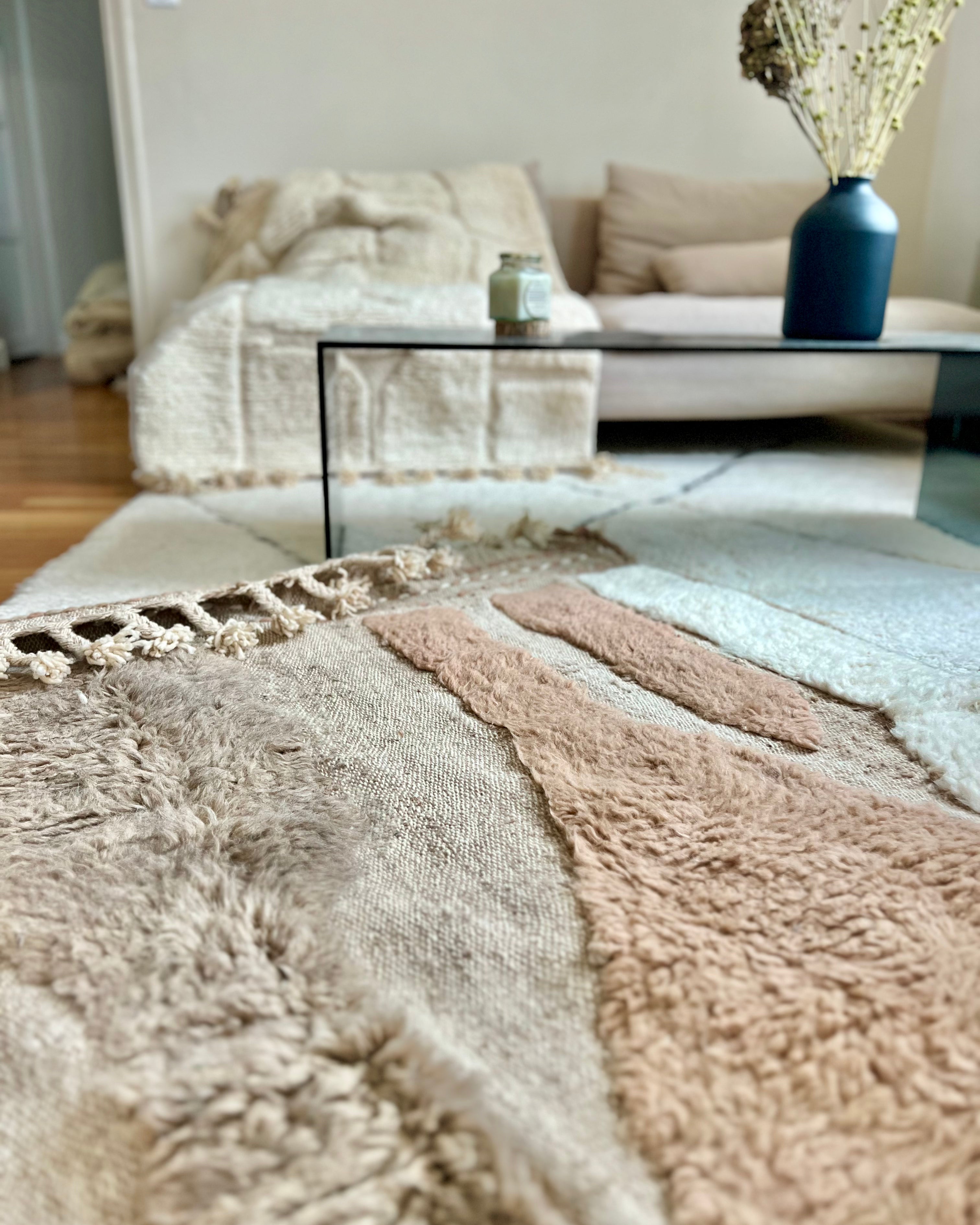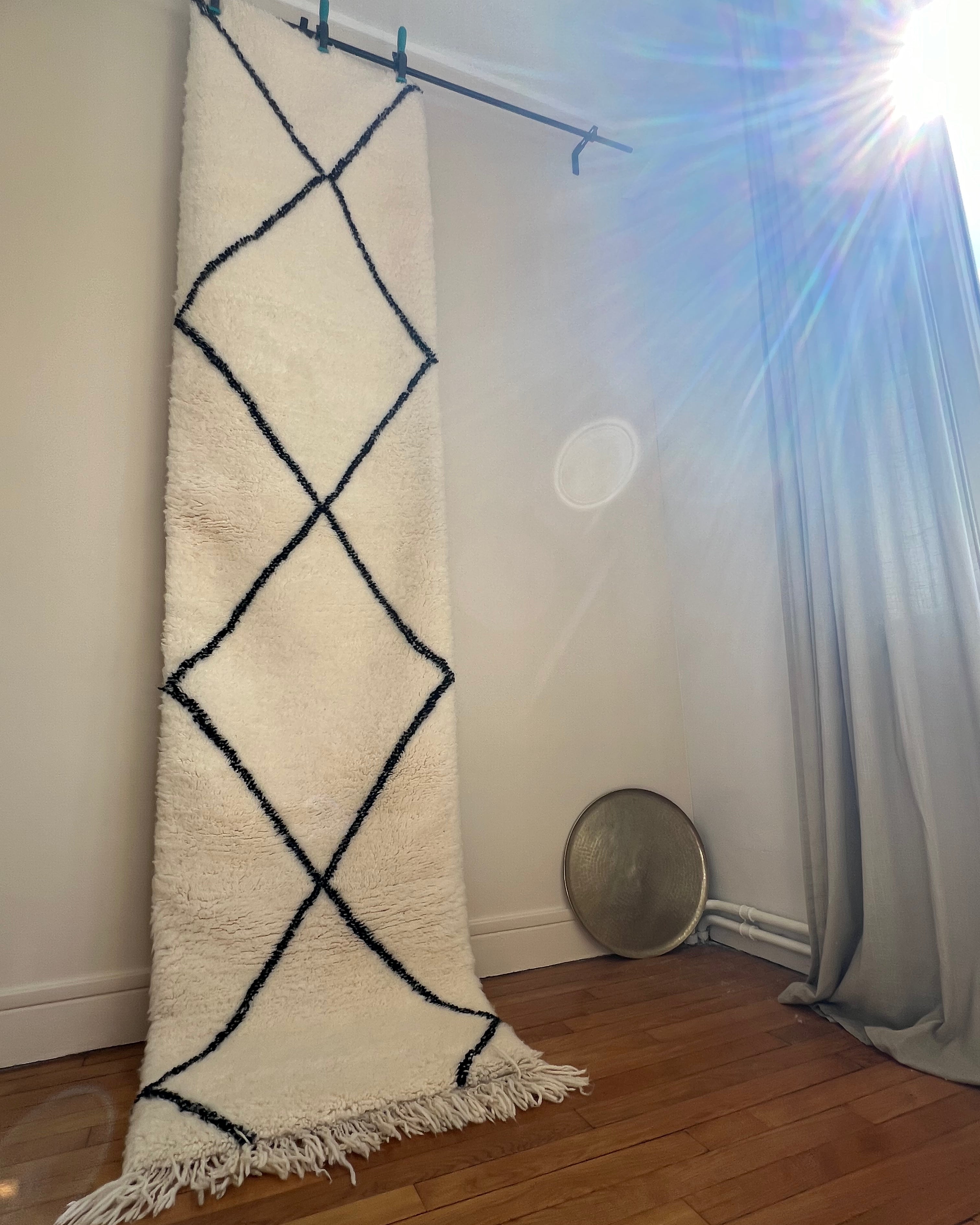 Je sélectionne personnellement chaque tapis en collaboration avec un artisan local. Cette démarche garantit des créations uniques, authentiques et respectueuses du travail artisanal.