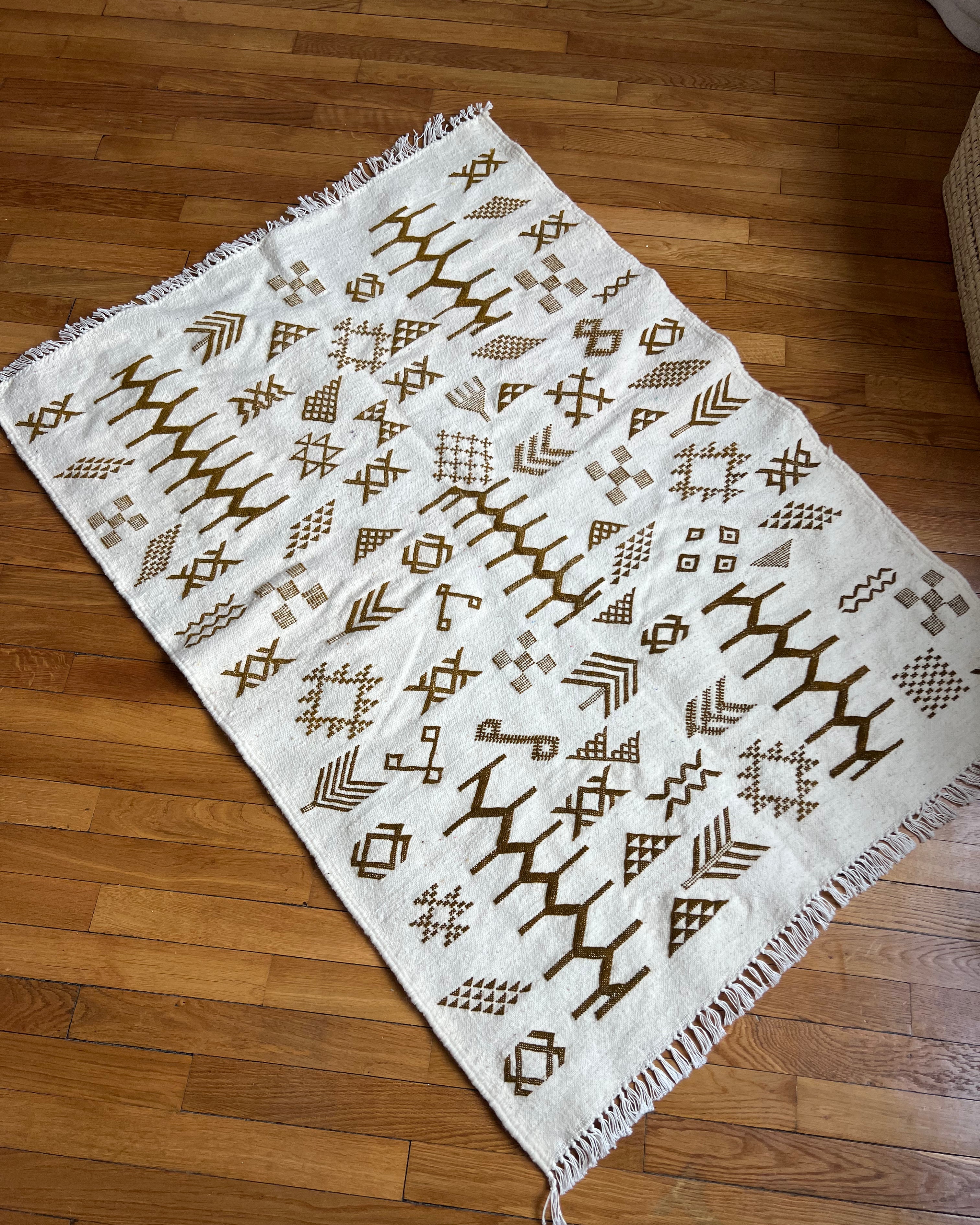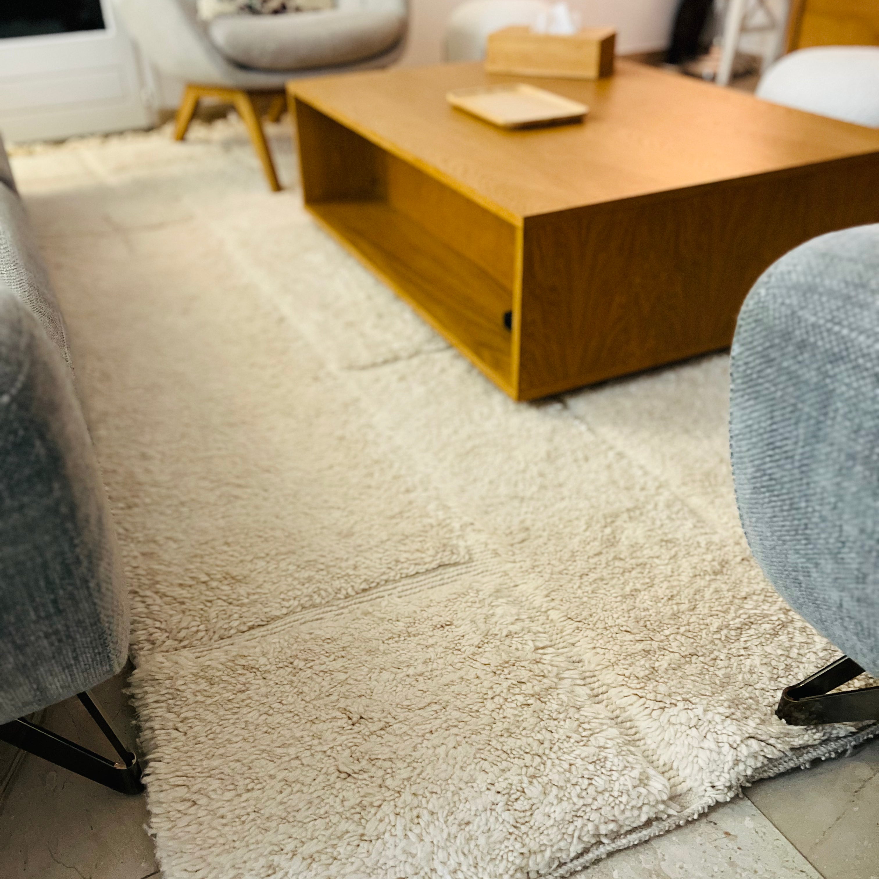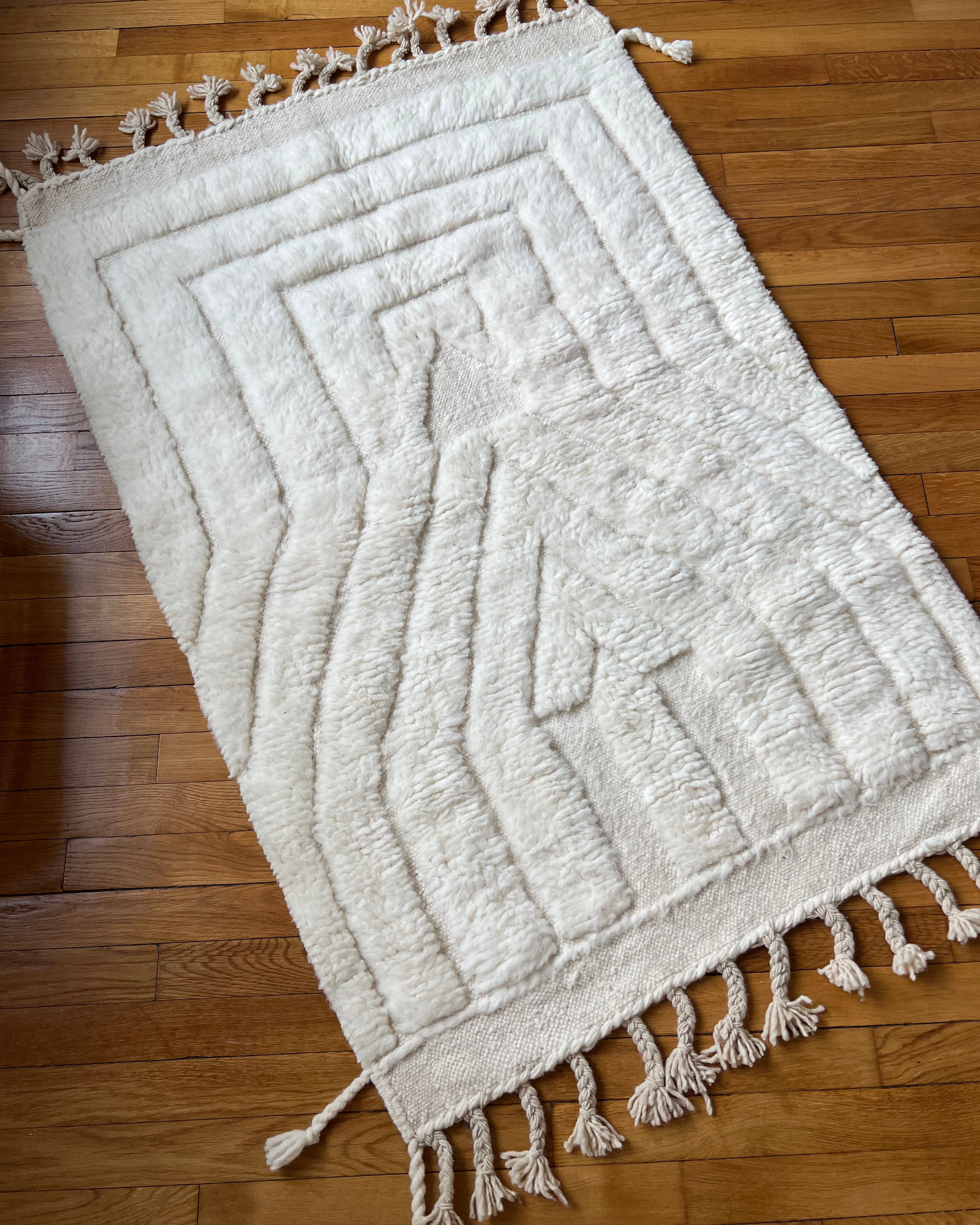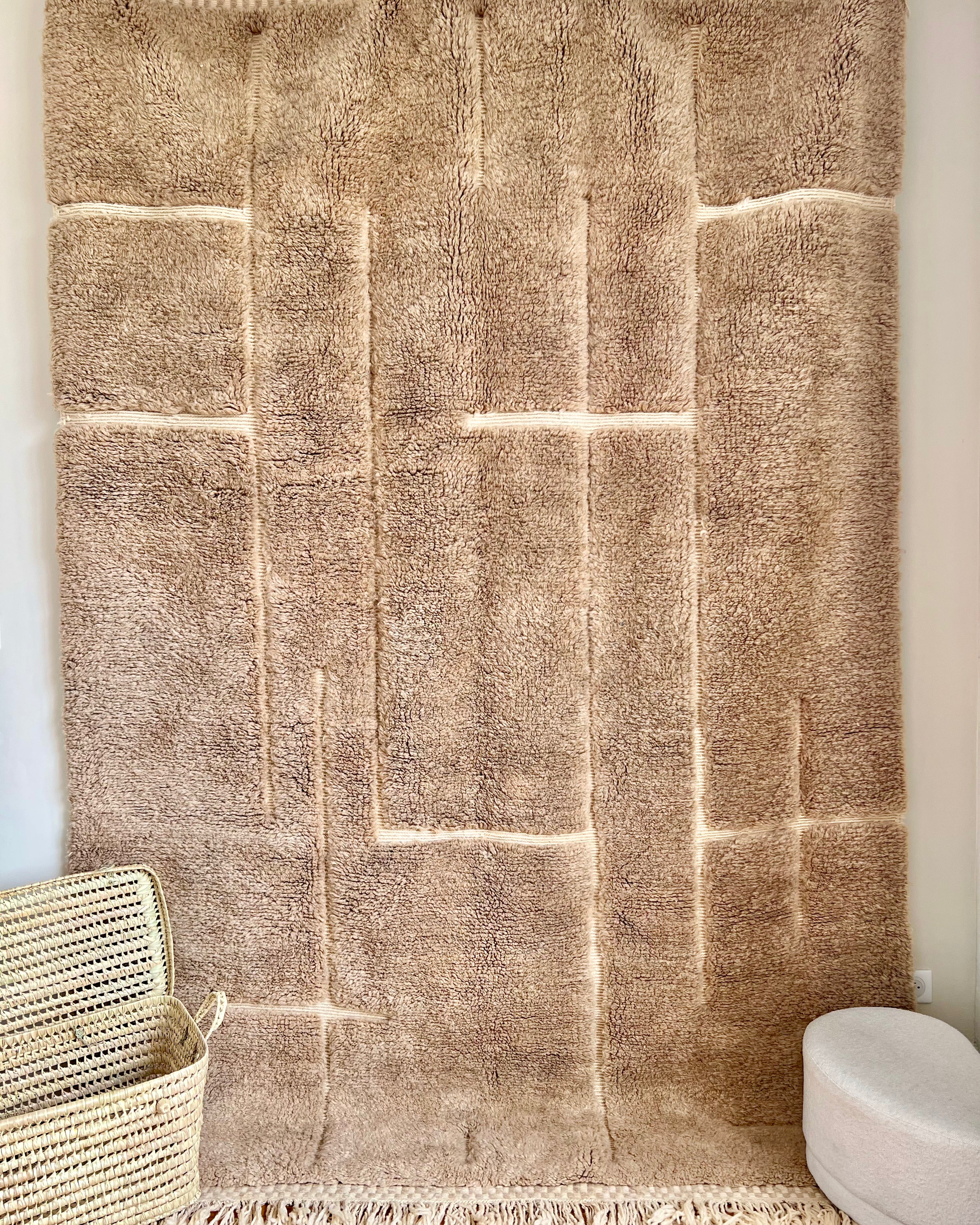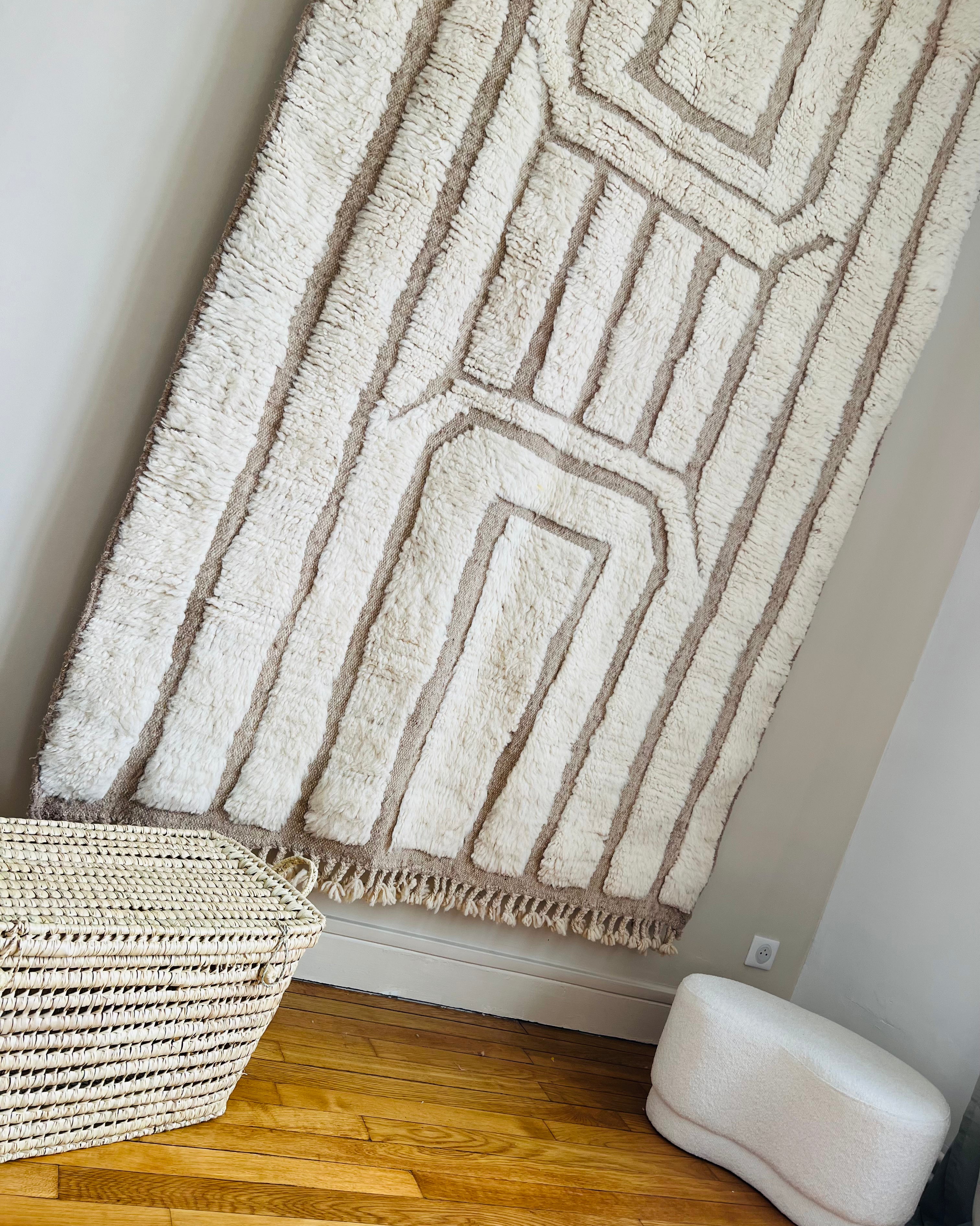 Je sélectionne personnellement chaque tapis en collaboration avec un artisan local. Cette démarche garantit des créations uniques, authentiques et respectueuses du travail artisanal.