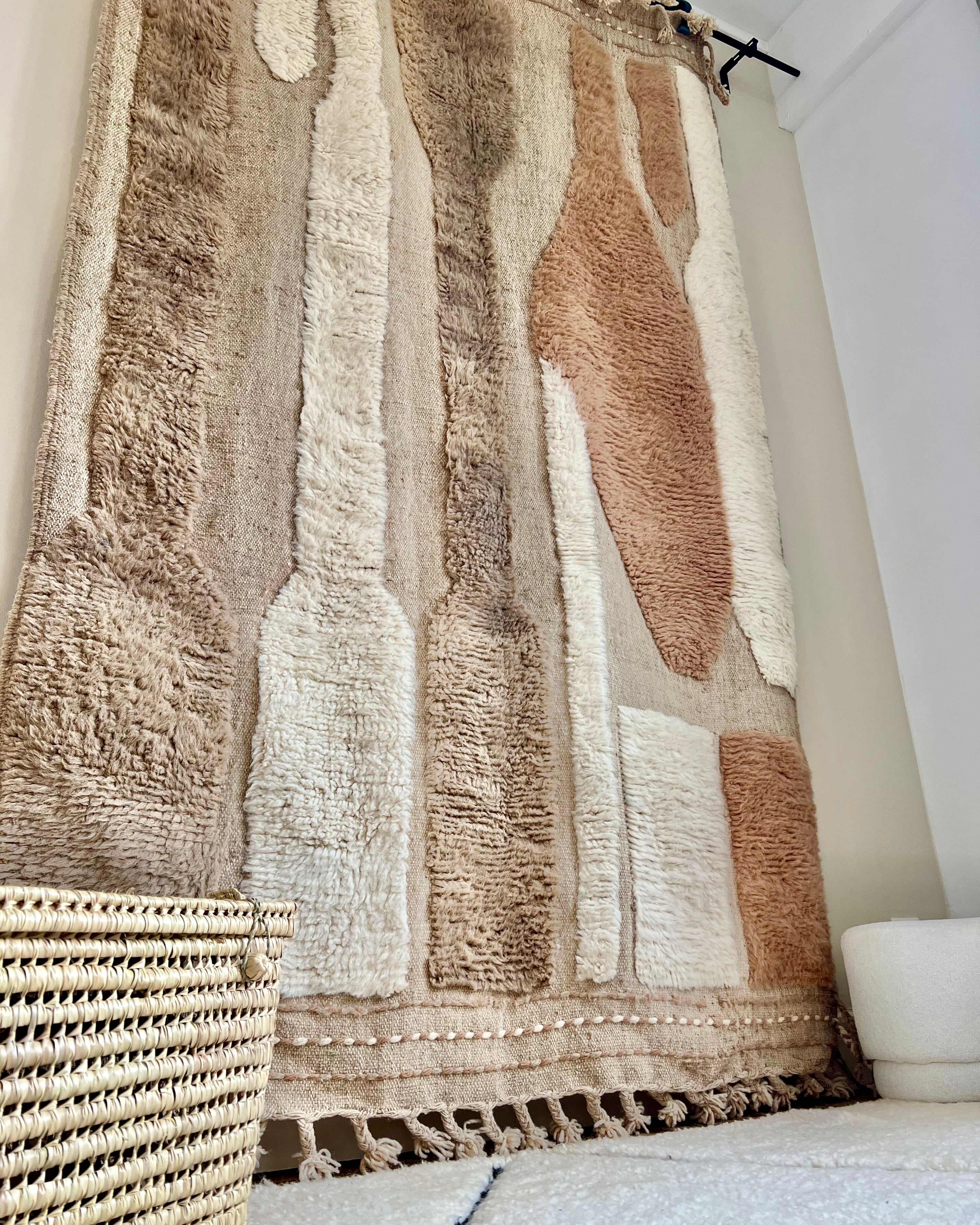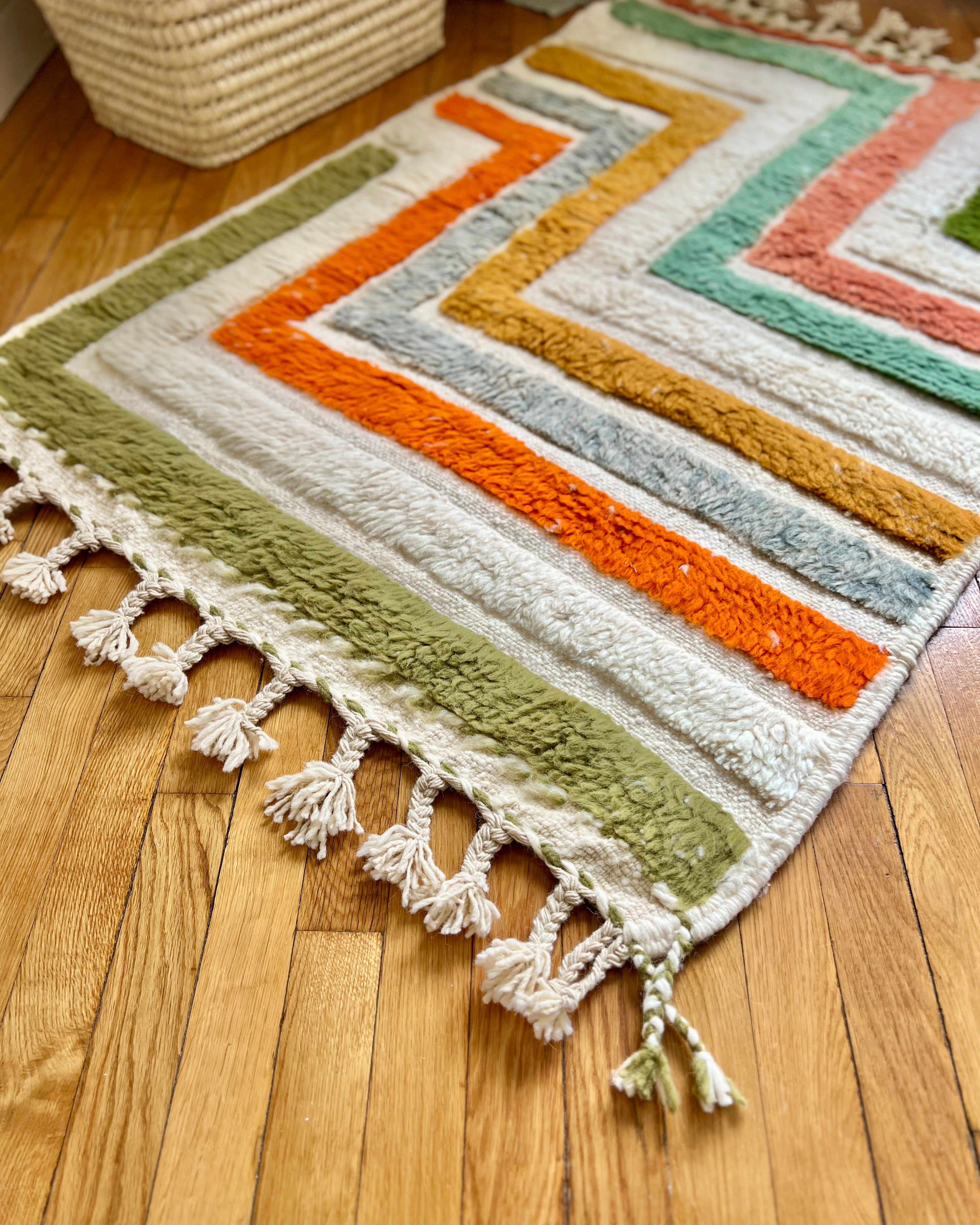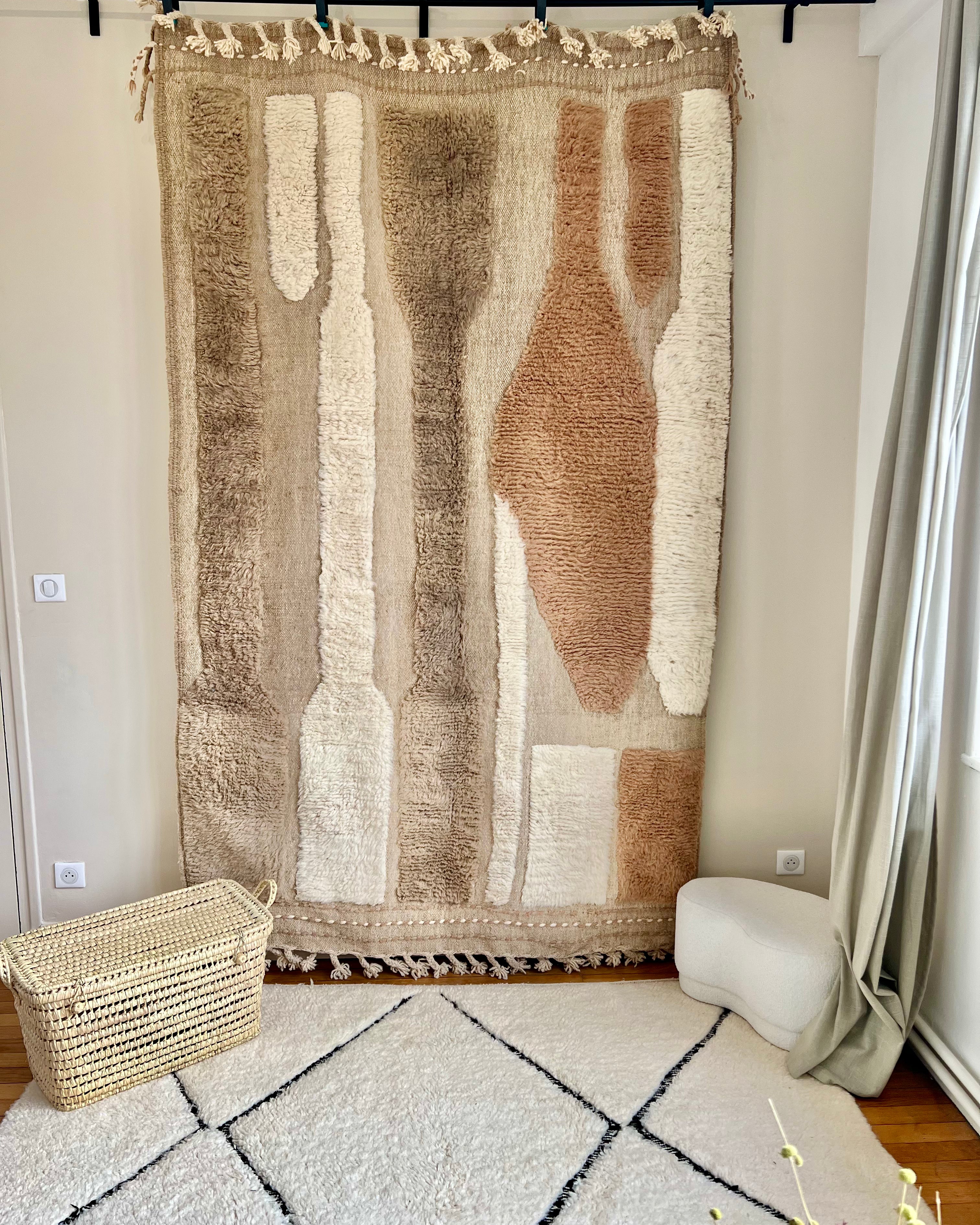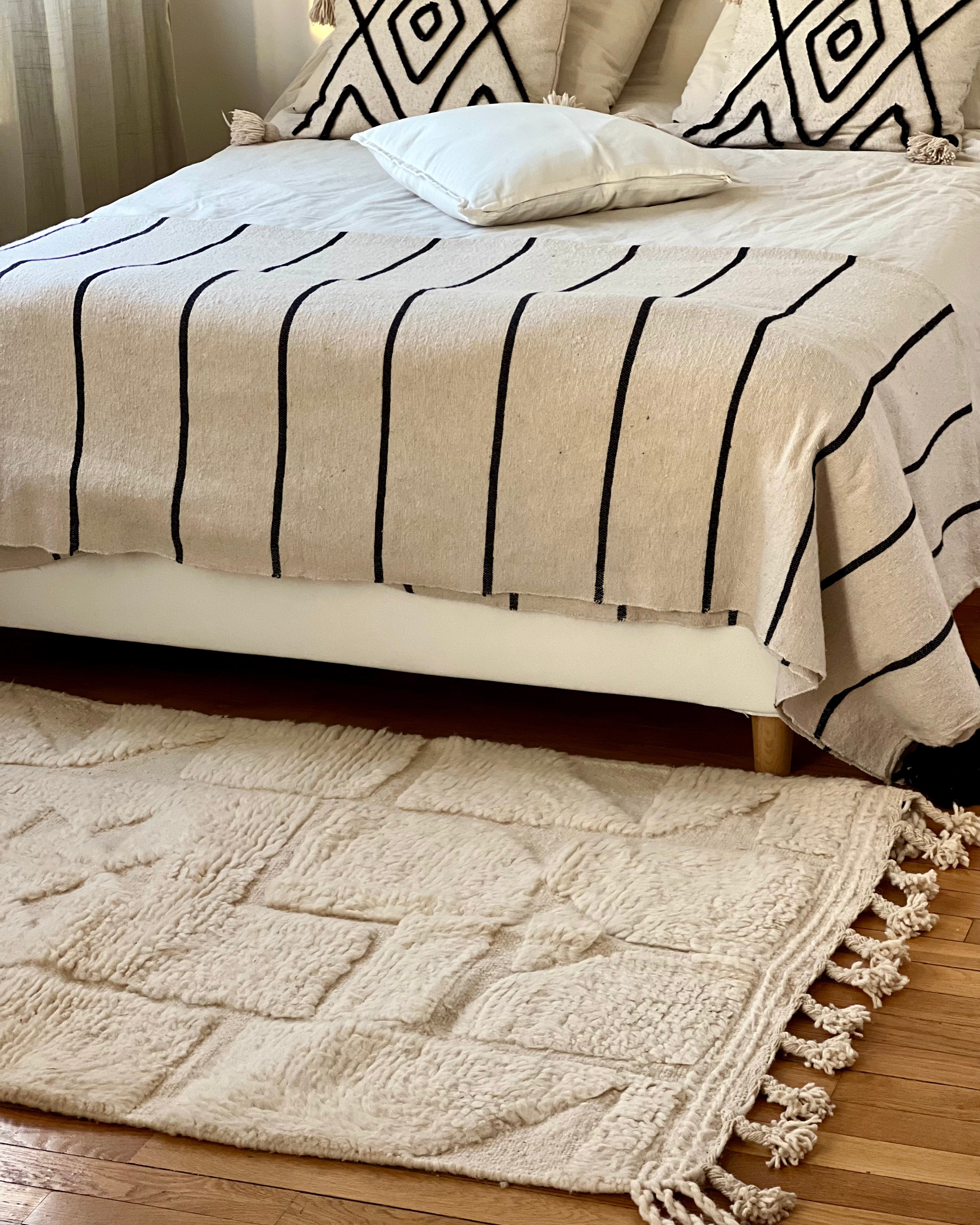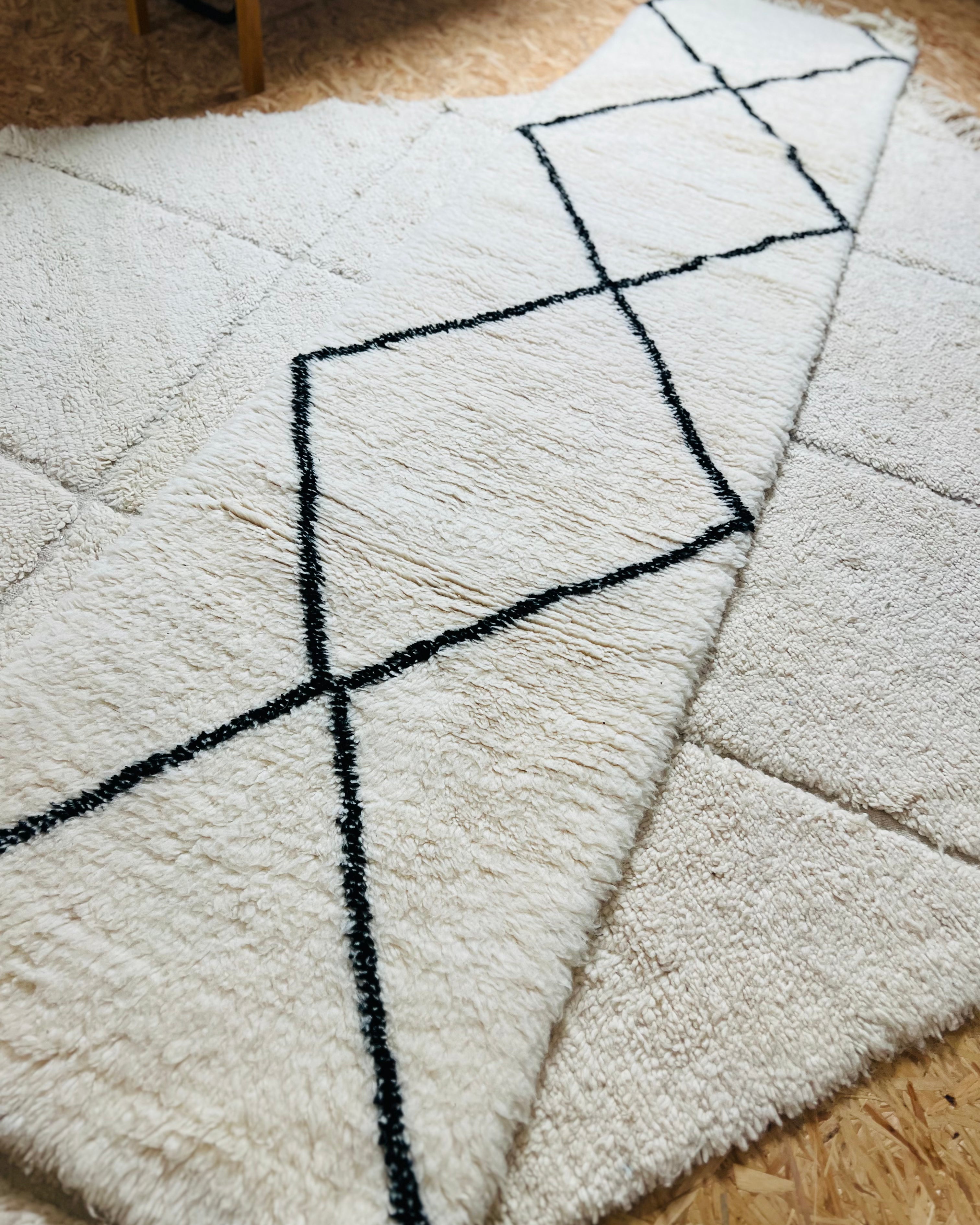 Je sélectionne personnellement chaque tapis en collaboration avec un artisan local. Cette démarche garantit des créations uniques, authentiques et respectueuses du travail artisanal.