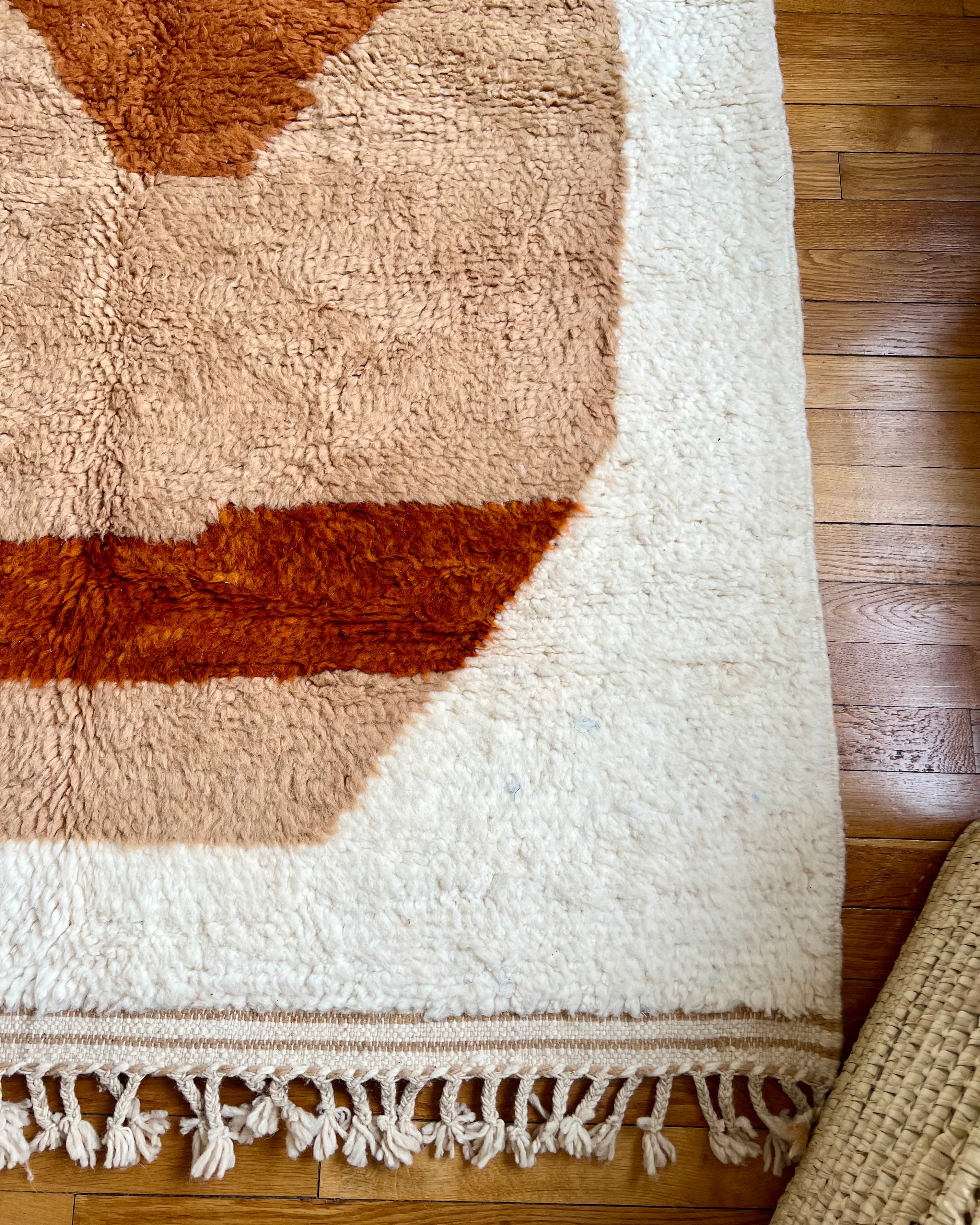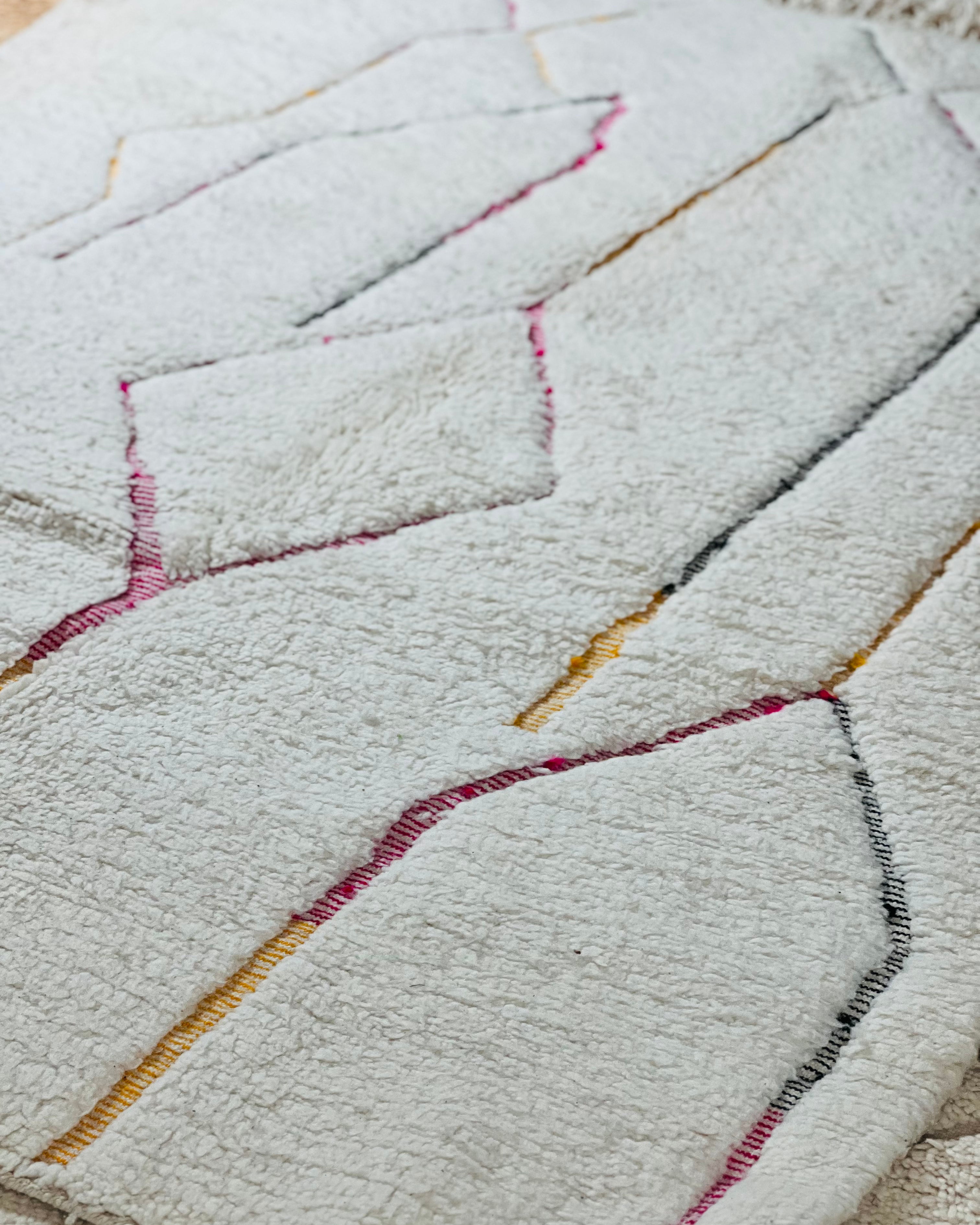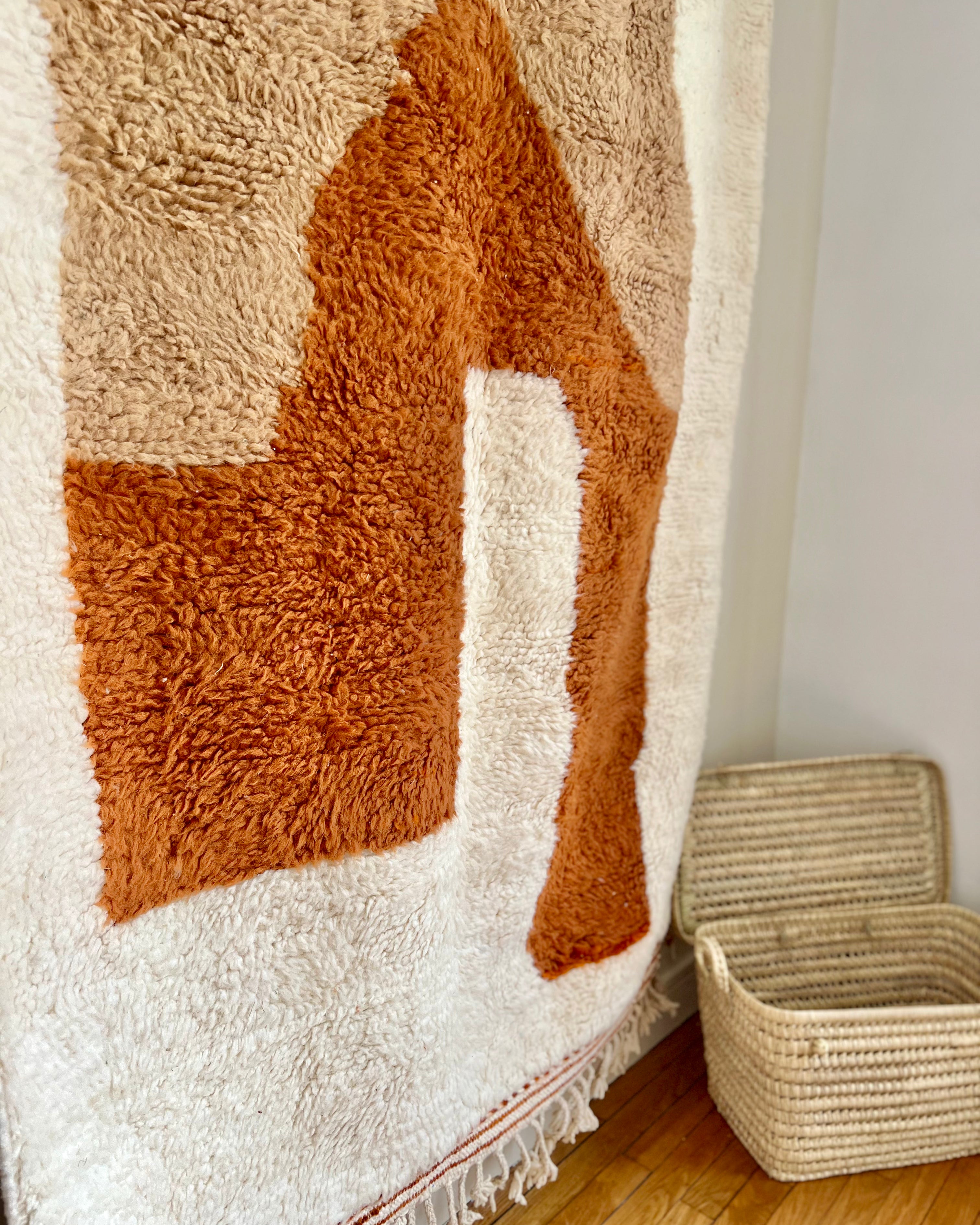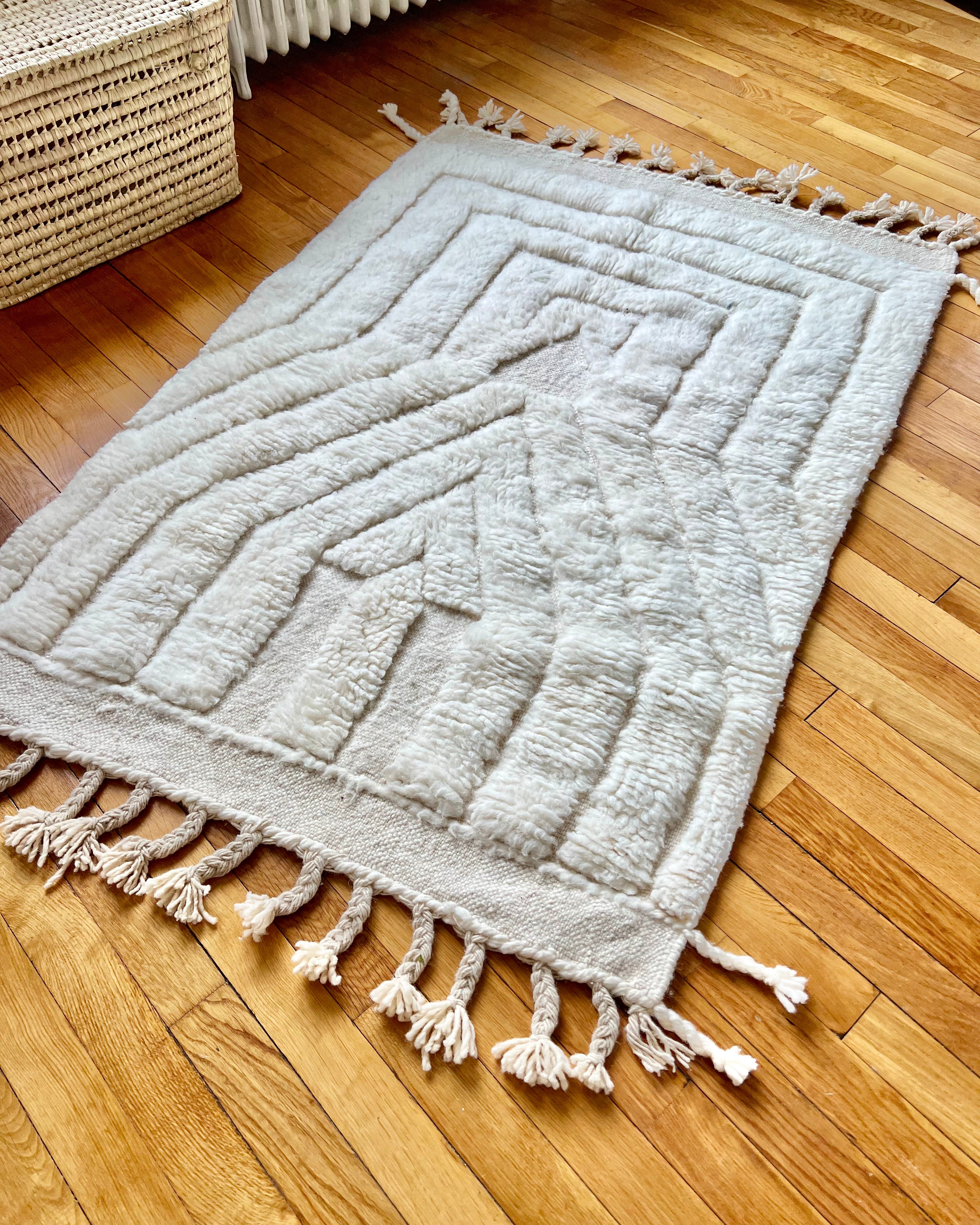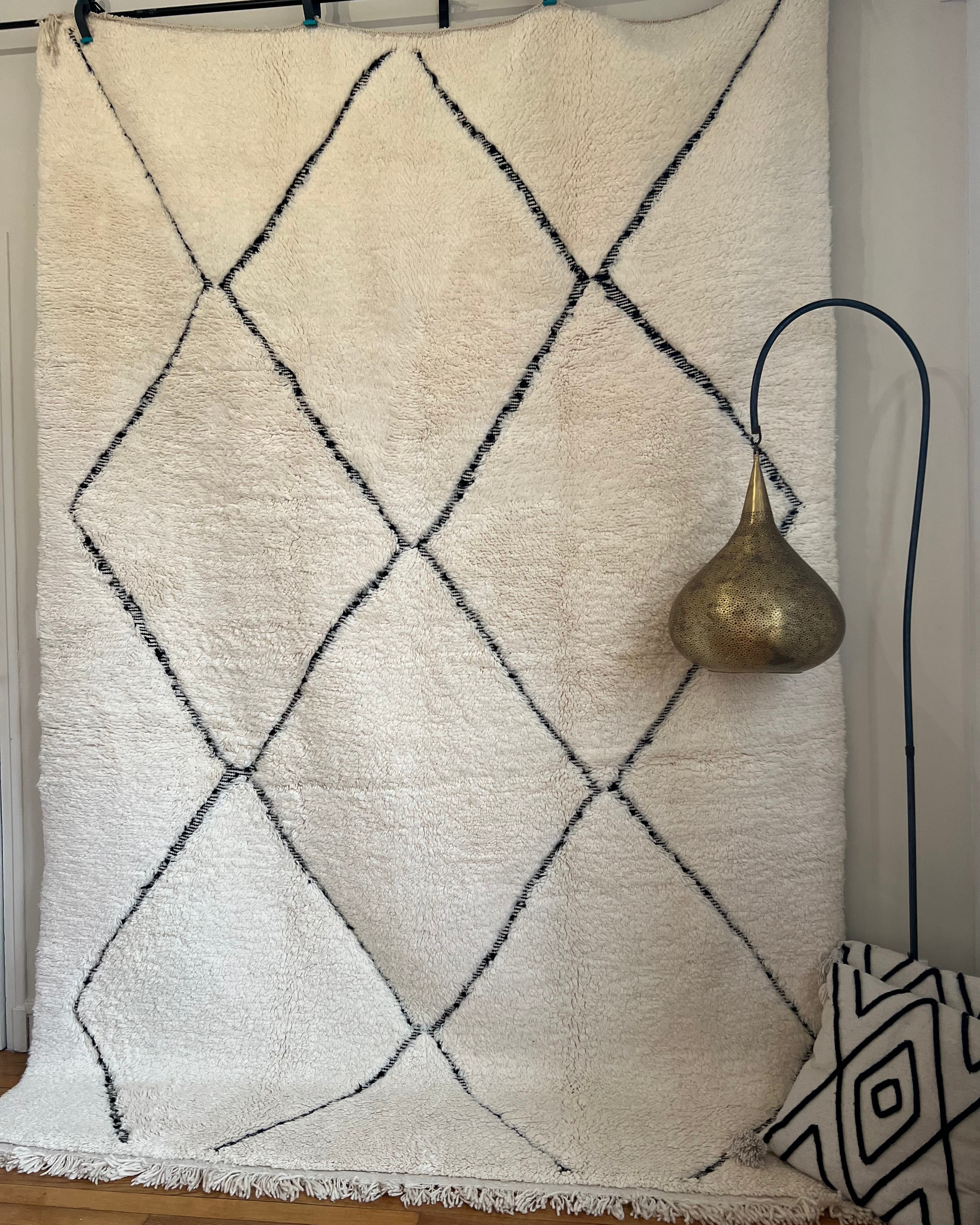 Je sélectionne personnellement chaque tapis en collaboration avec un artisan local. Cette démarche garantit des créations uniques, authentiques et respectueuses du travail artisanal.