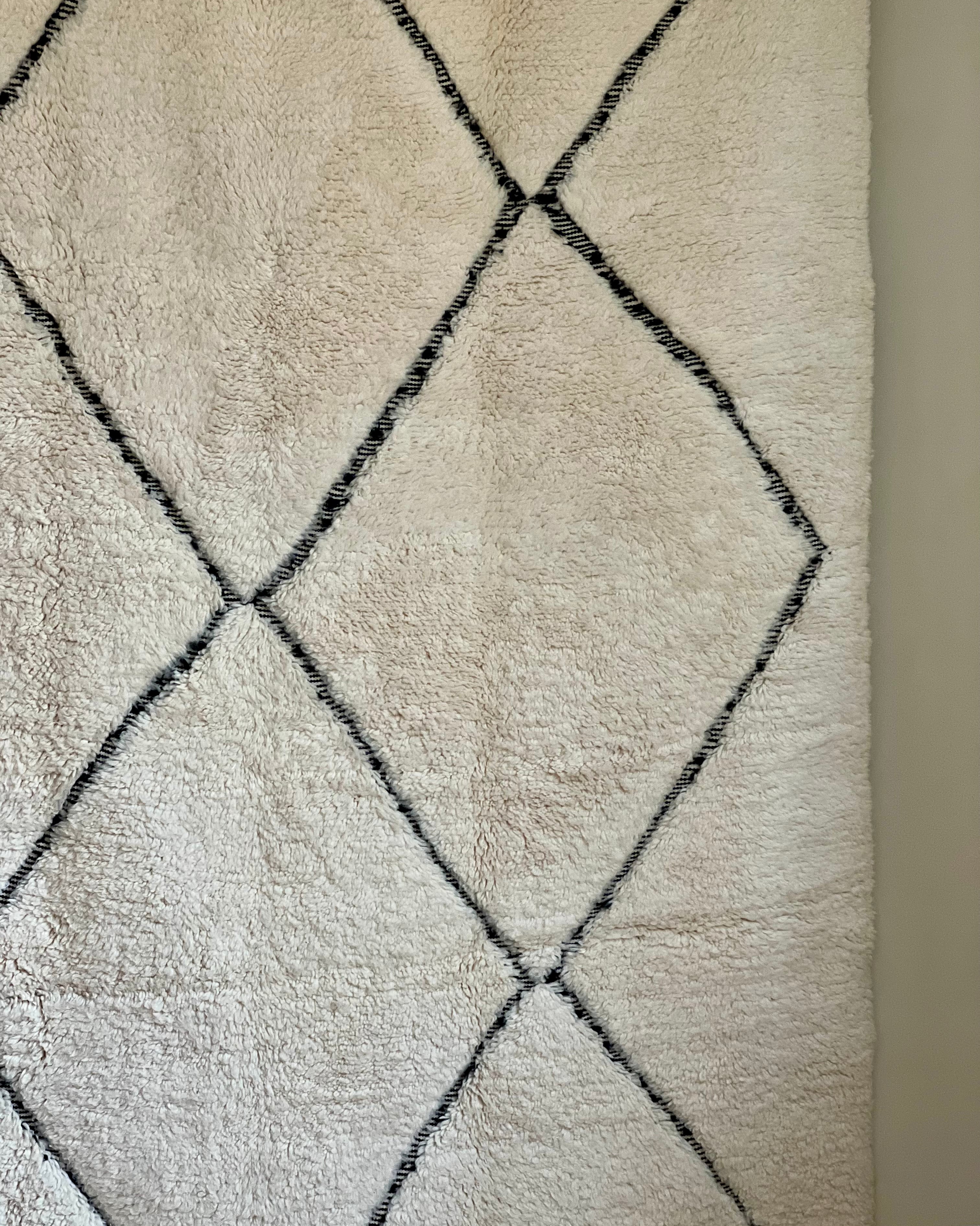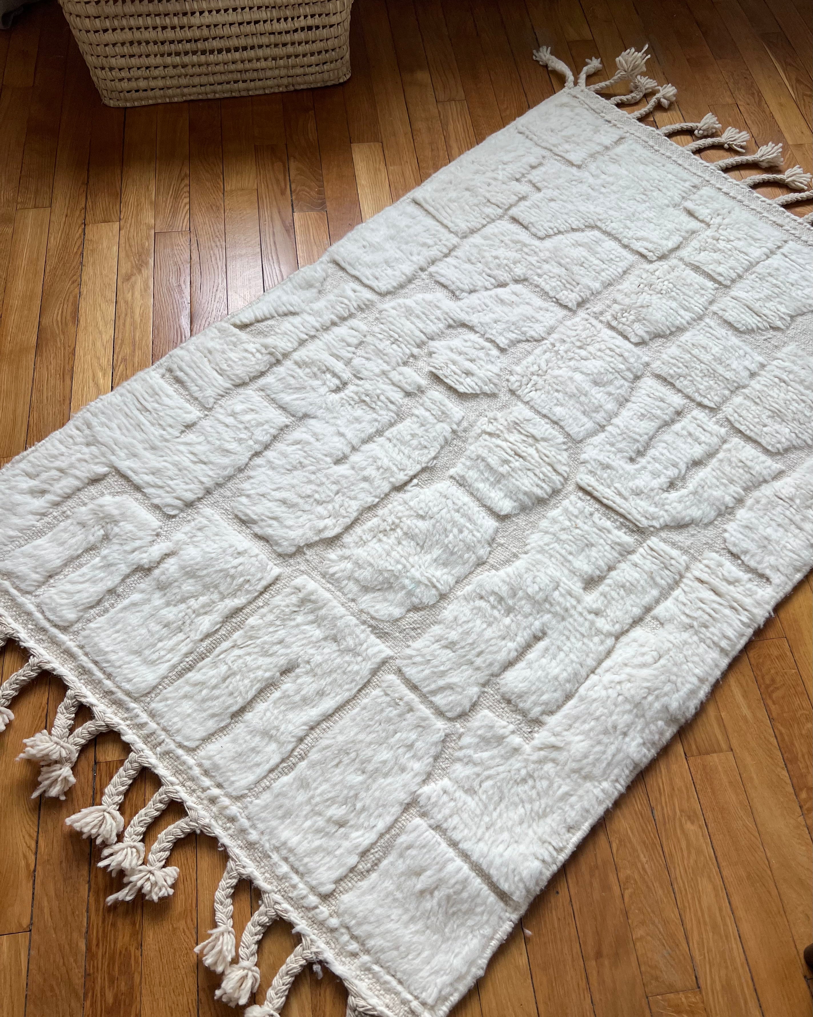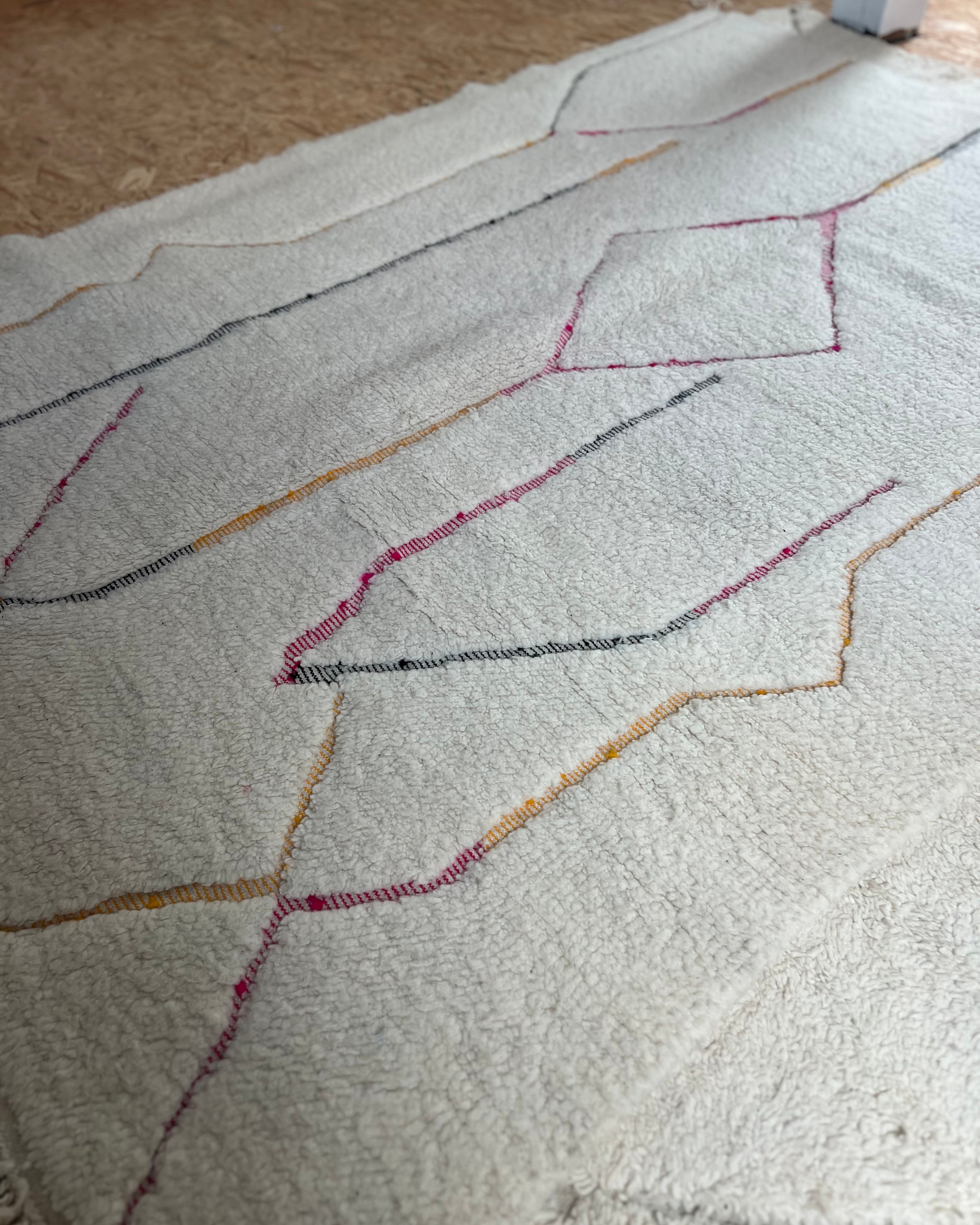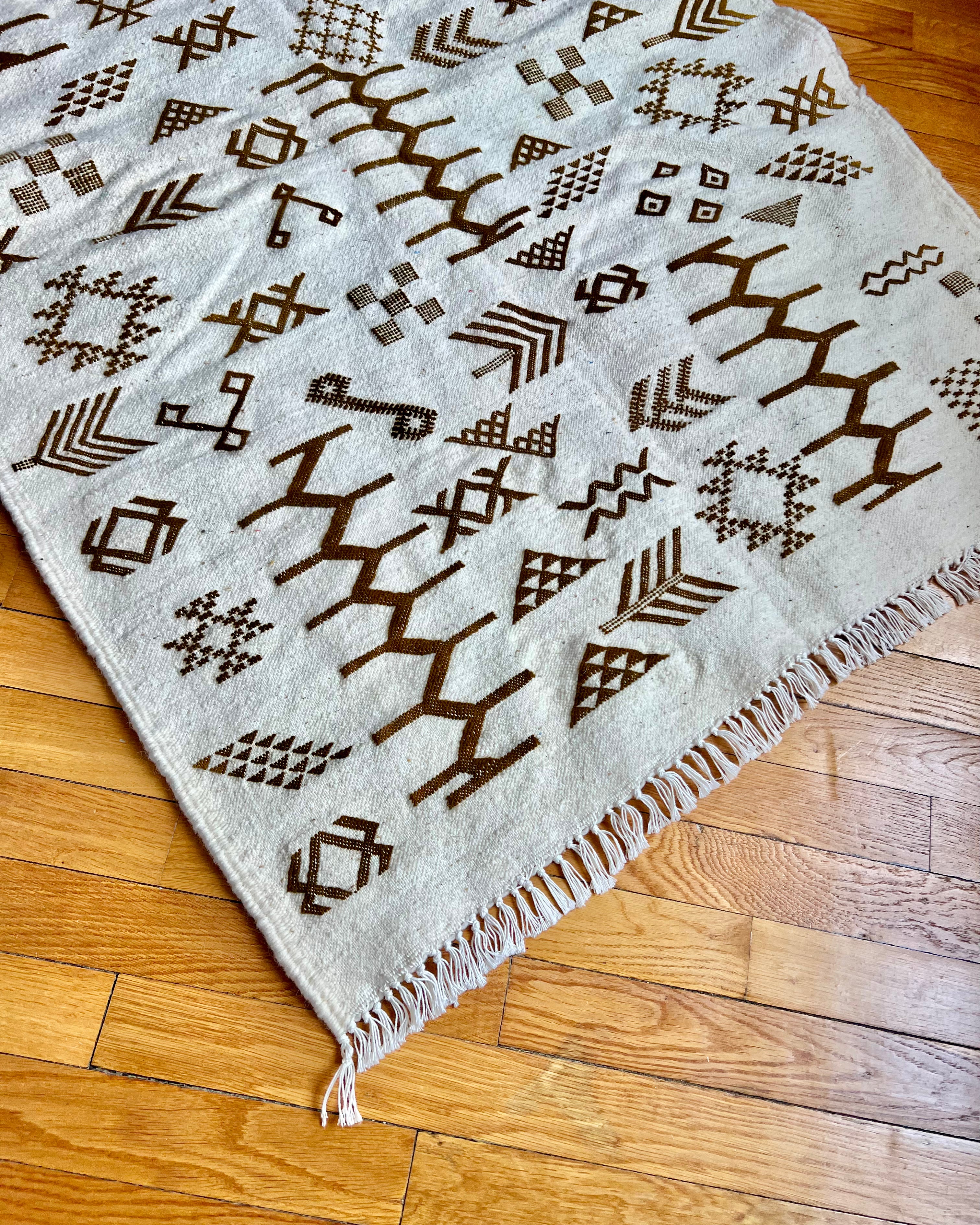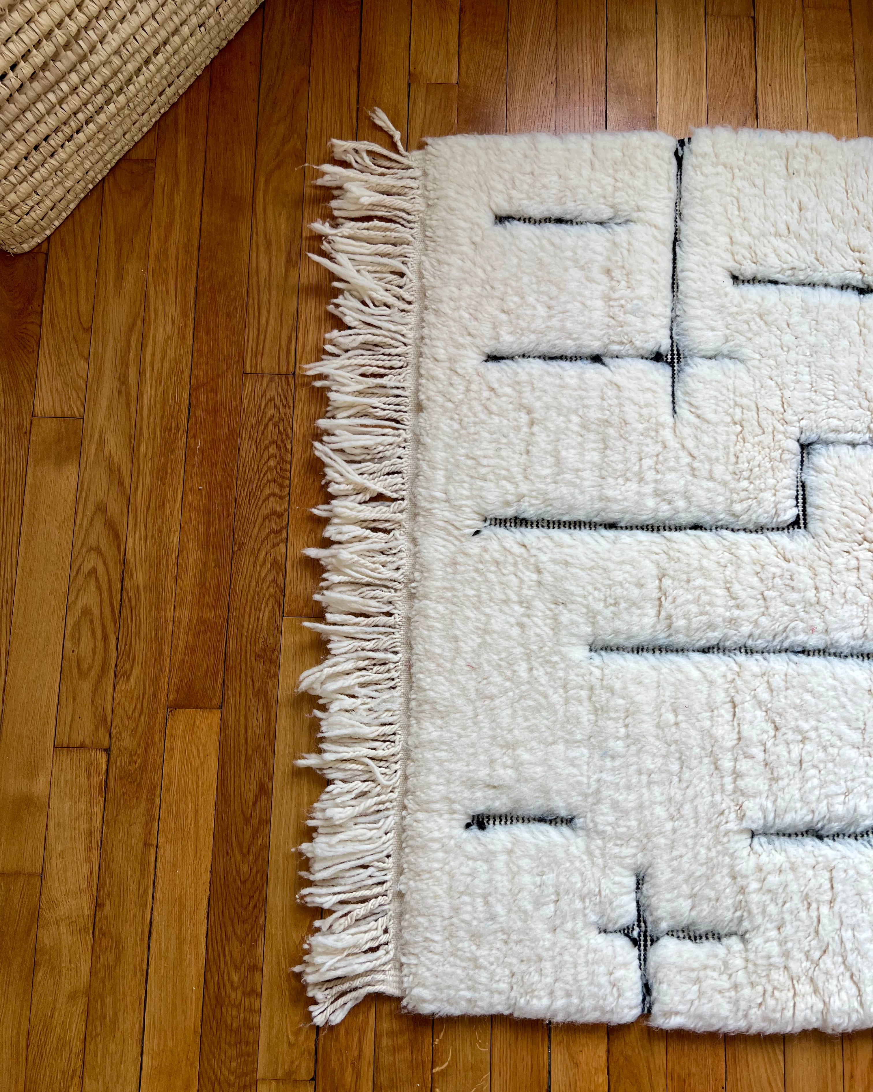 Je sélectionne personnellement chaque tapis en collaboration avec un artisan local. Cette démarche garantit des créations uniques, authentiques et respectueuses du travail artisanal.