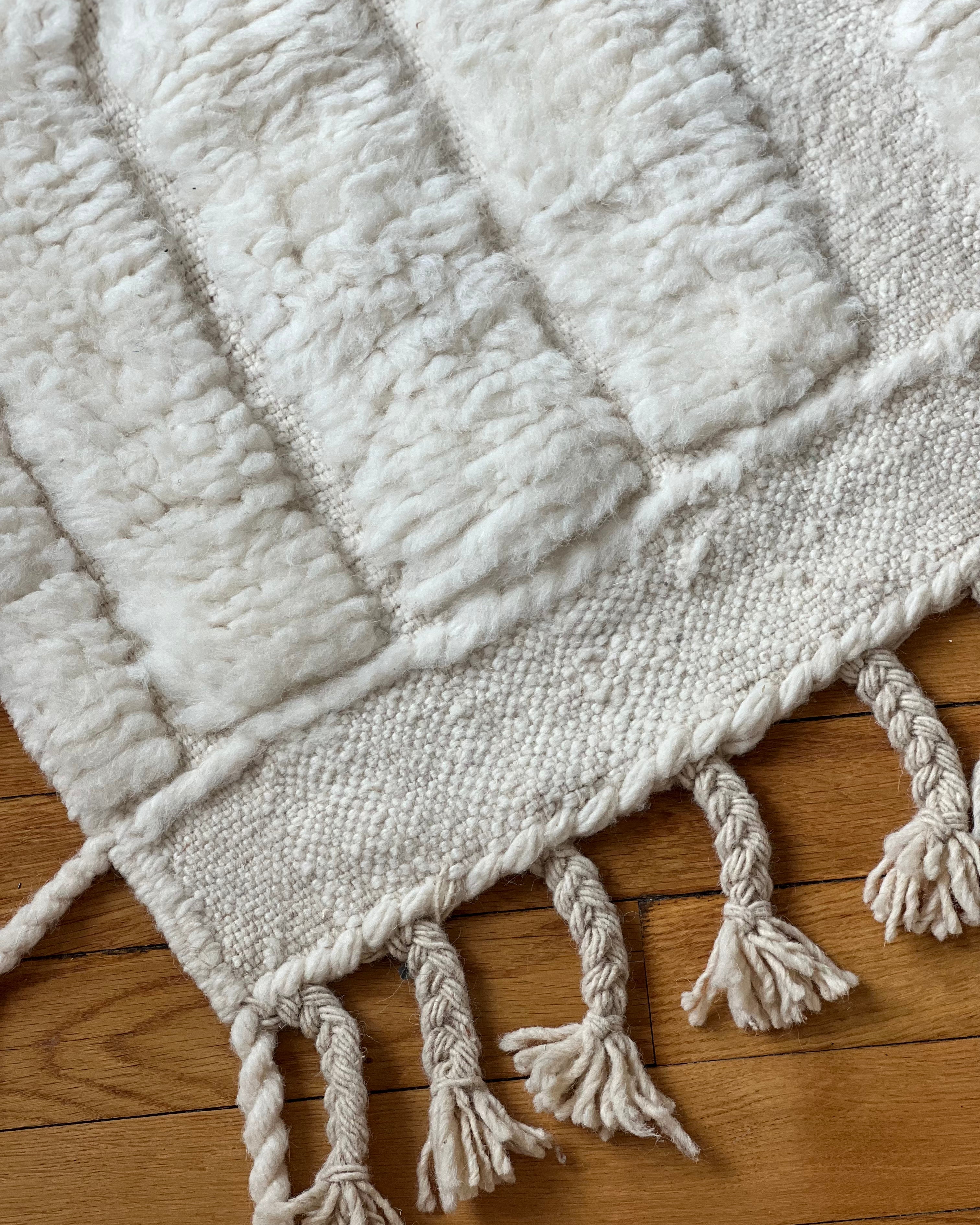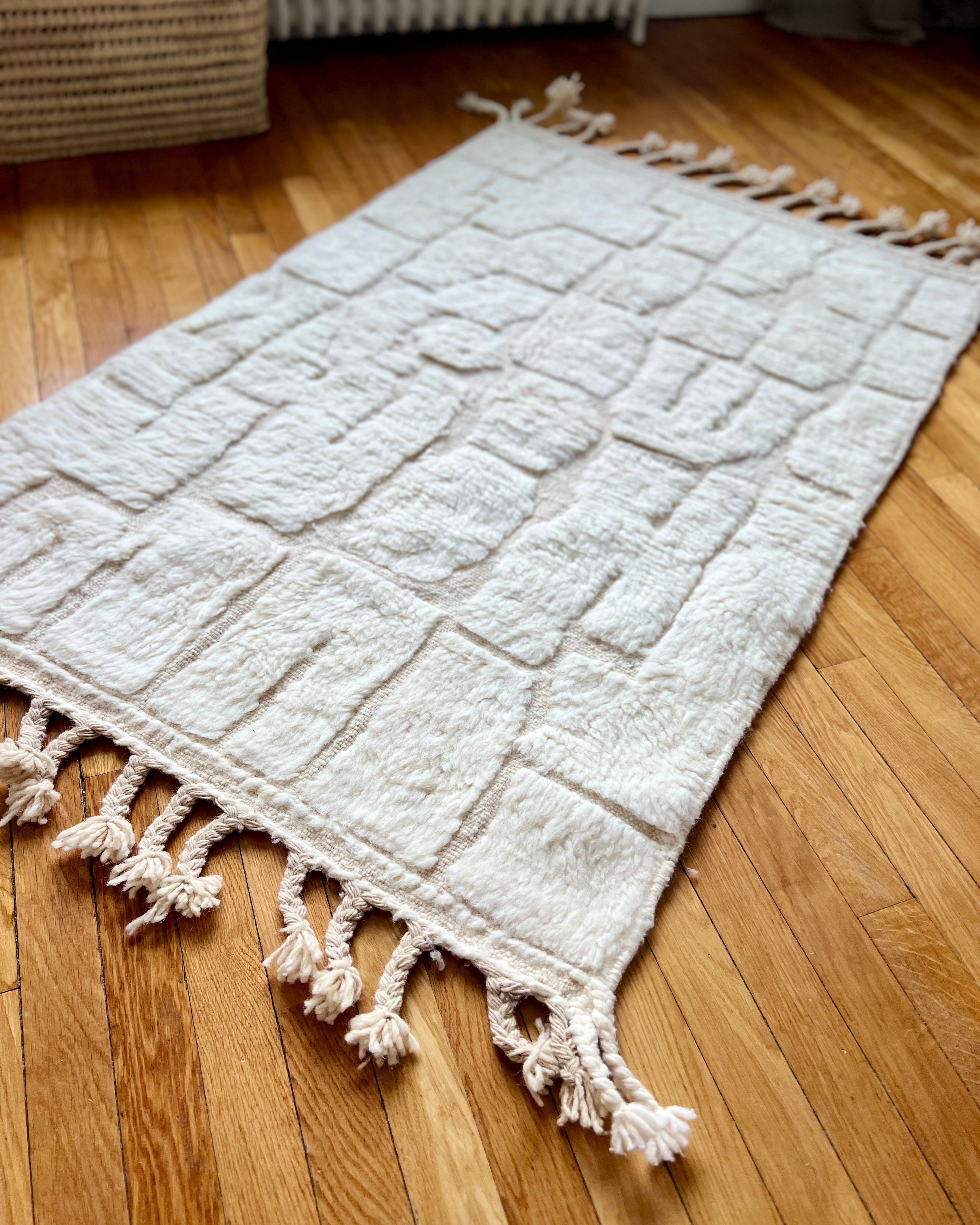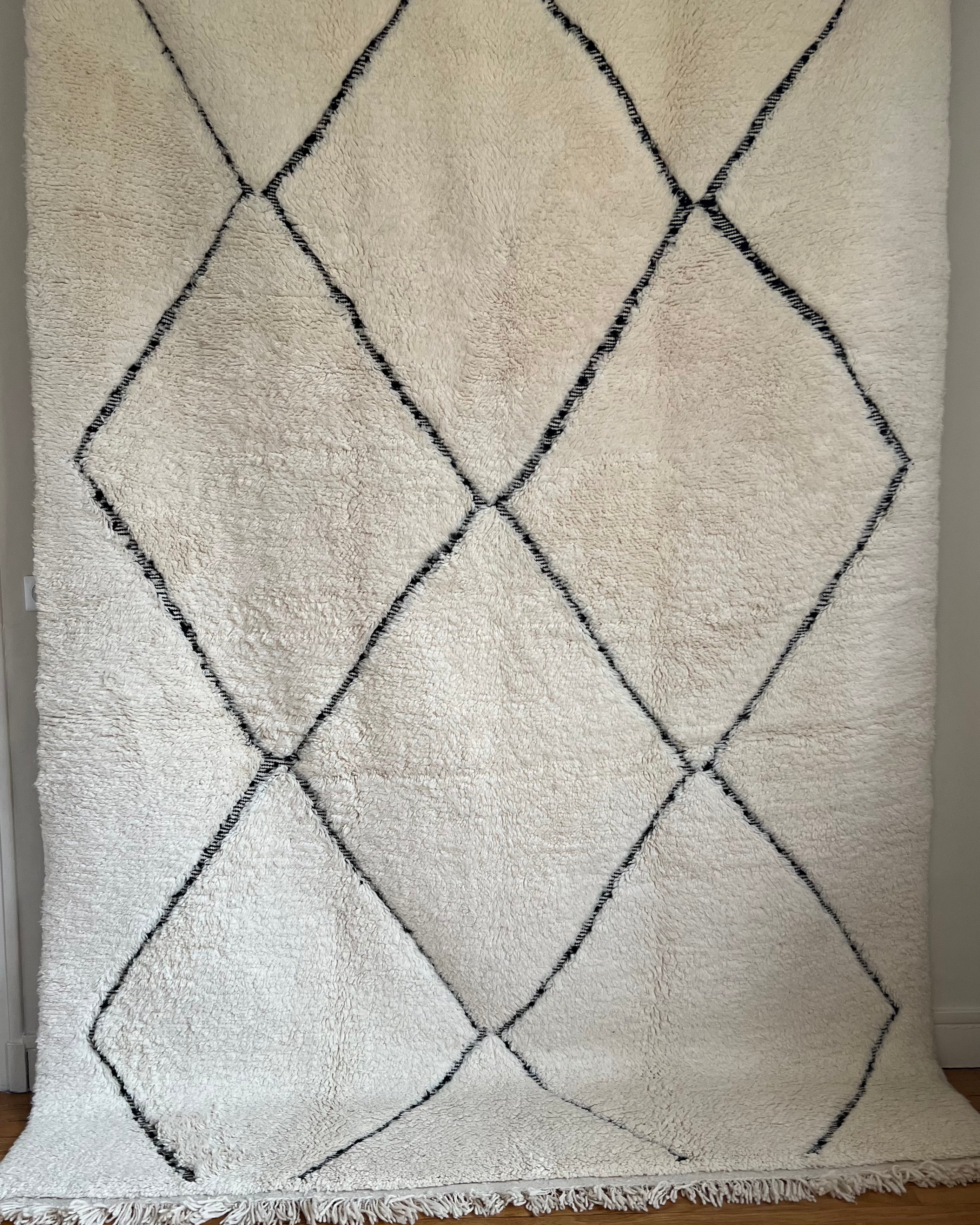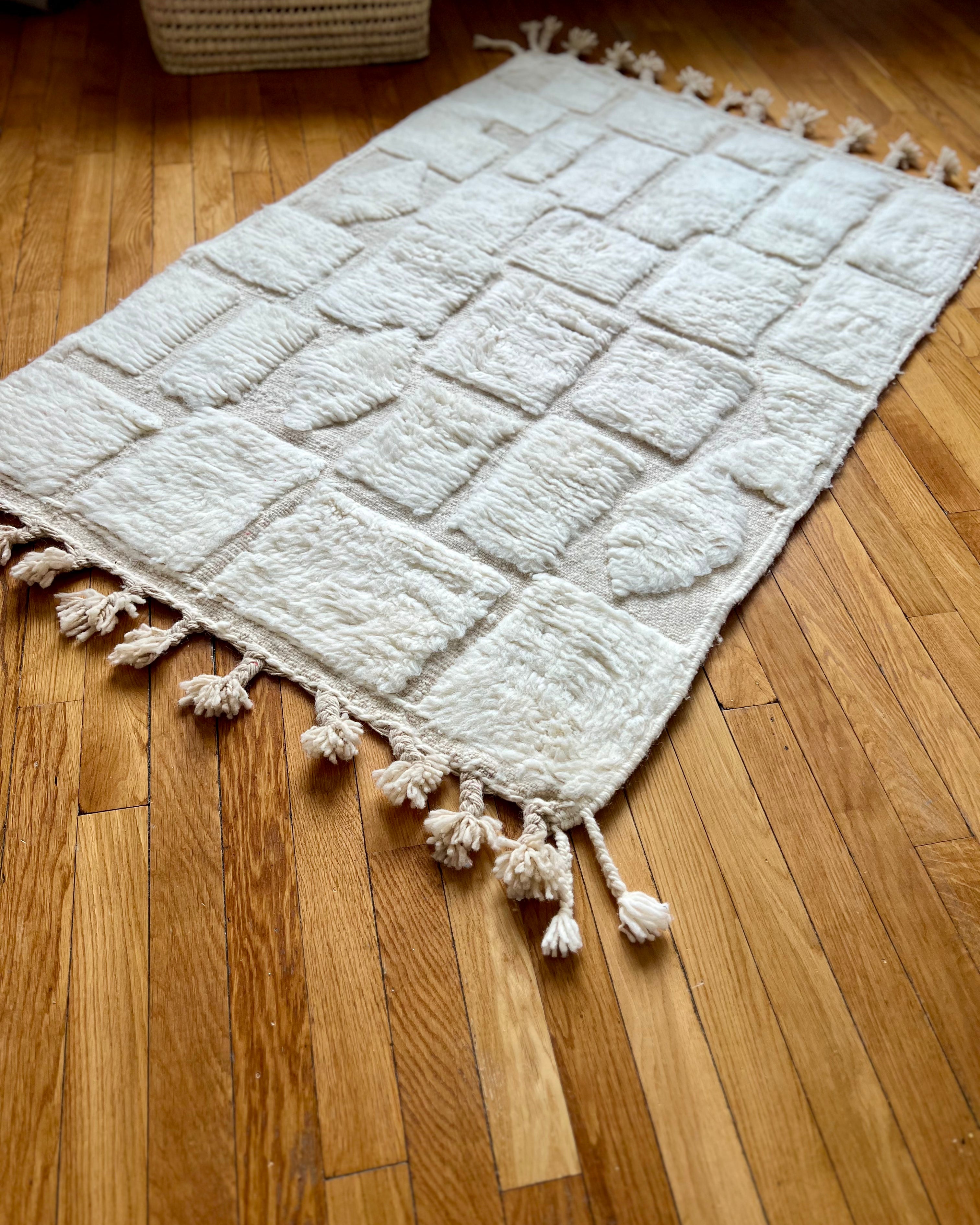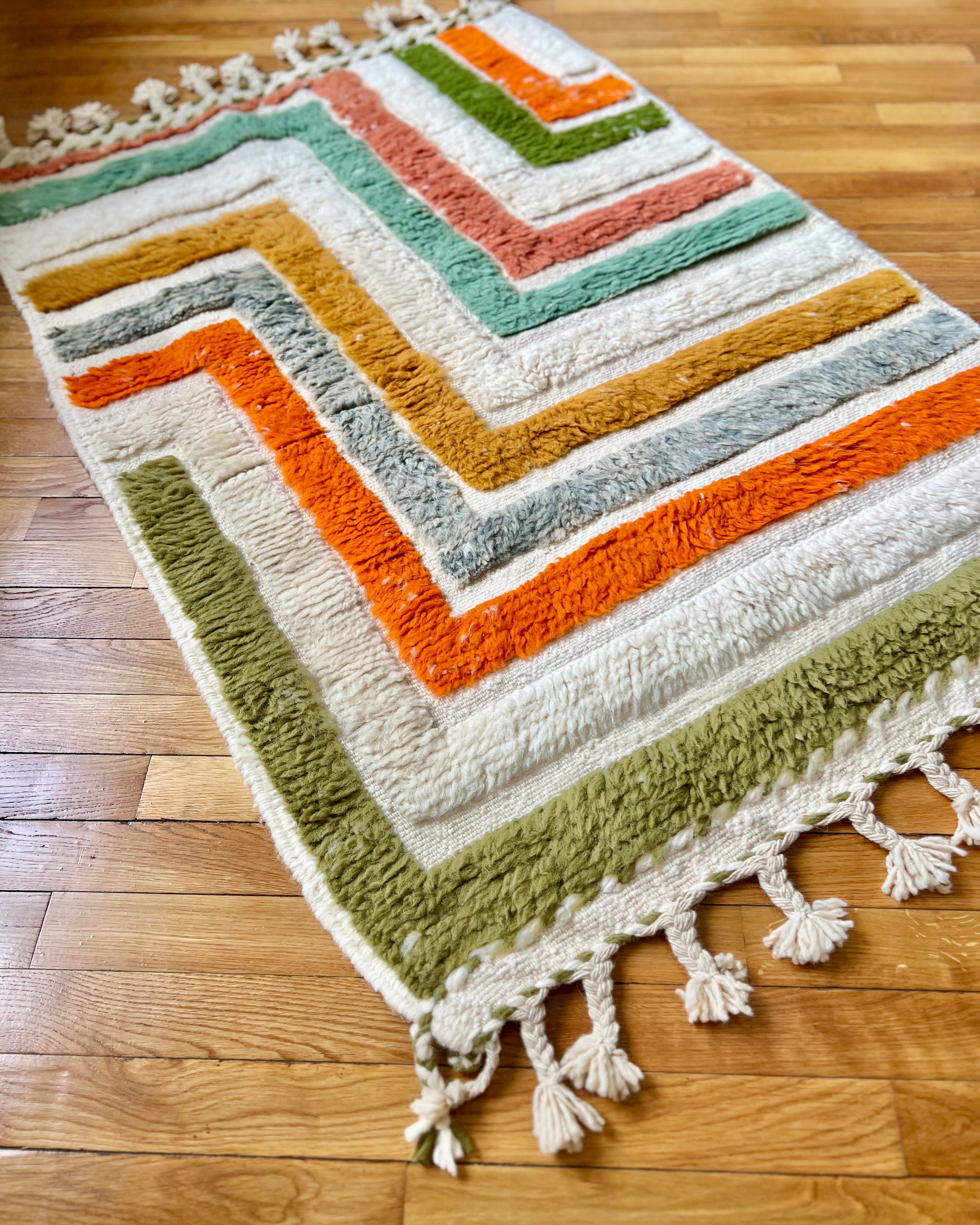 Je sélectionne personnellement chaque tapis en collaboration avec un artisan local. Cette démarche garantit des créations uniques, authentiques et respectueuses du travail artisanal.