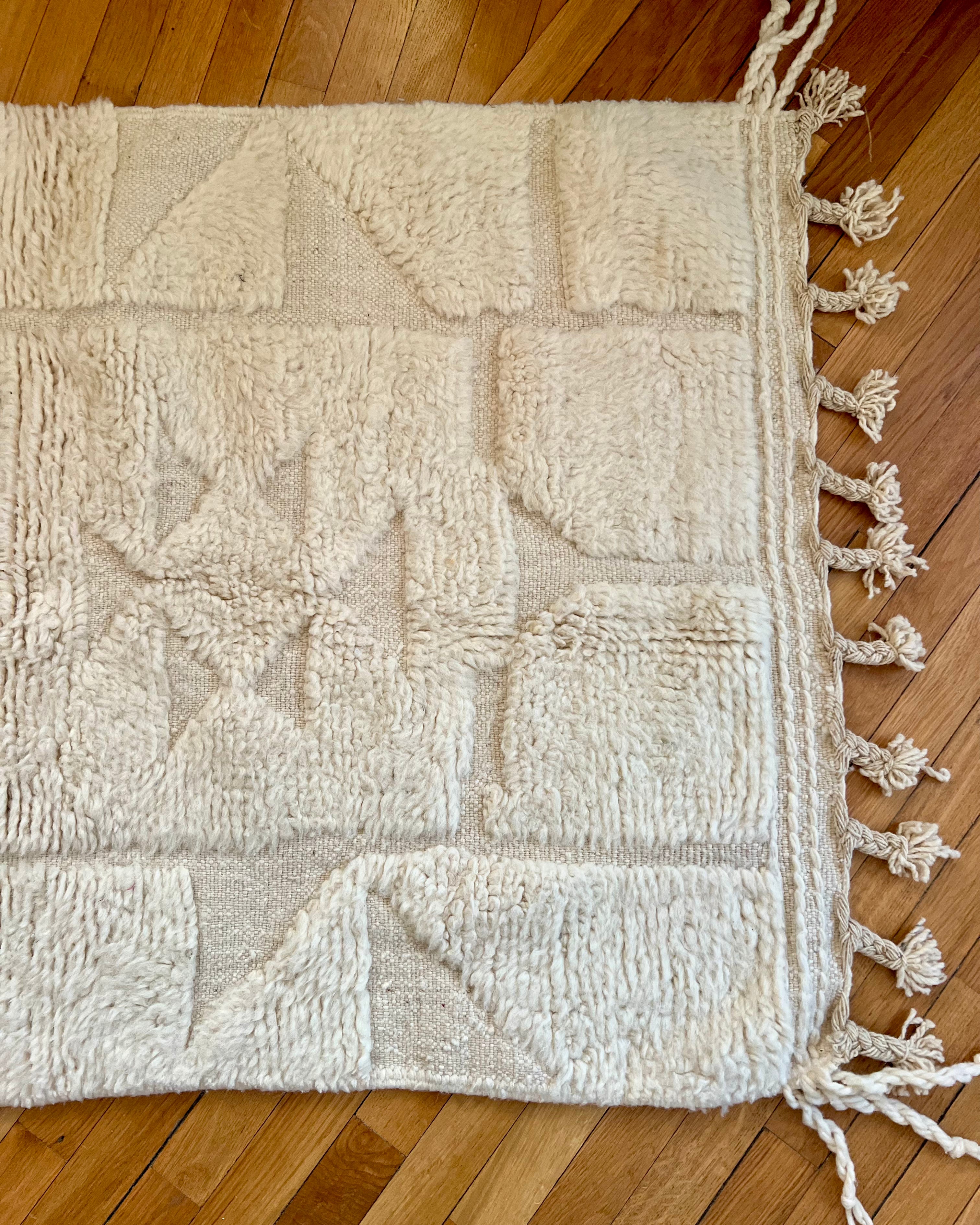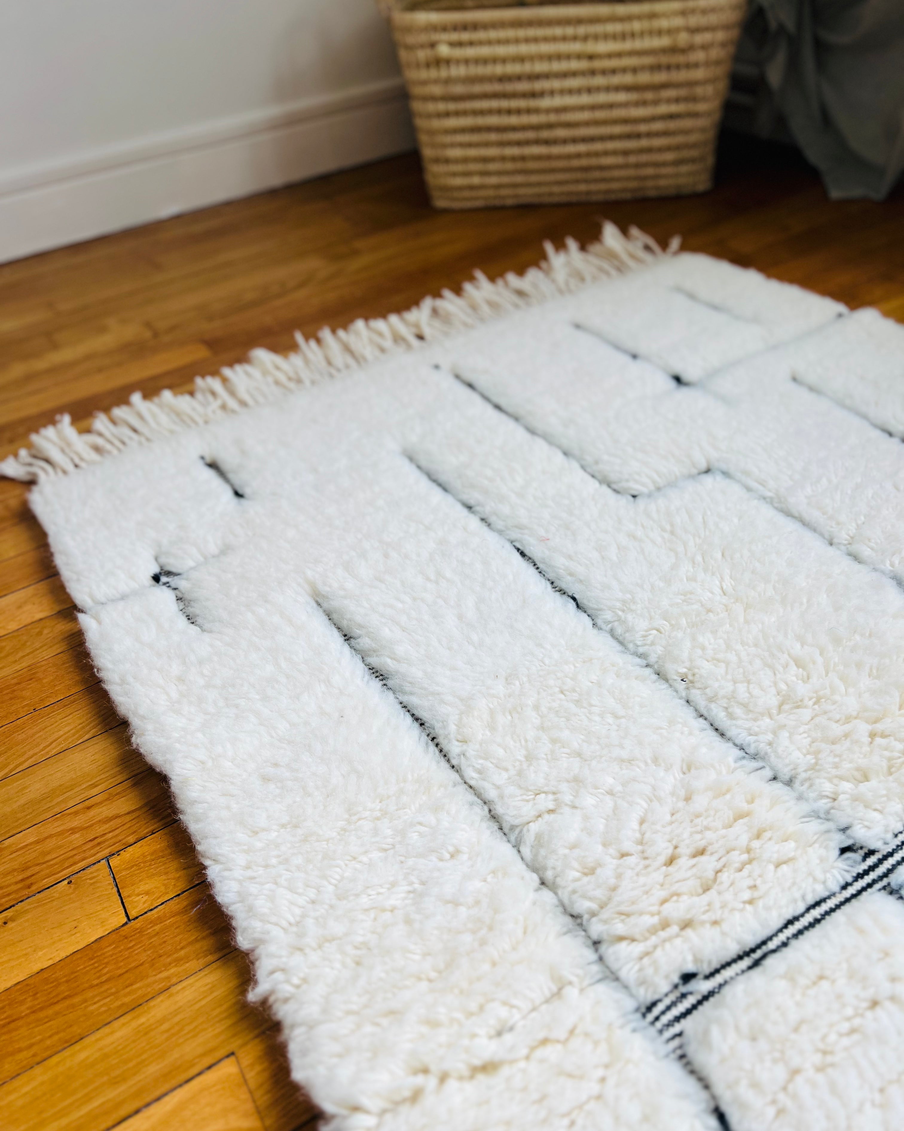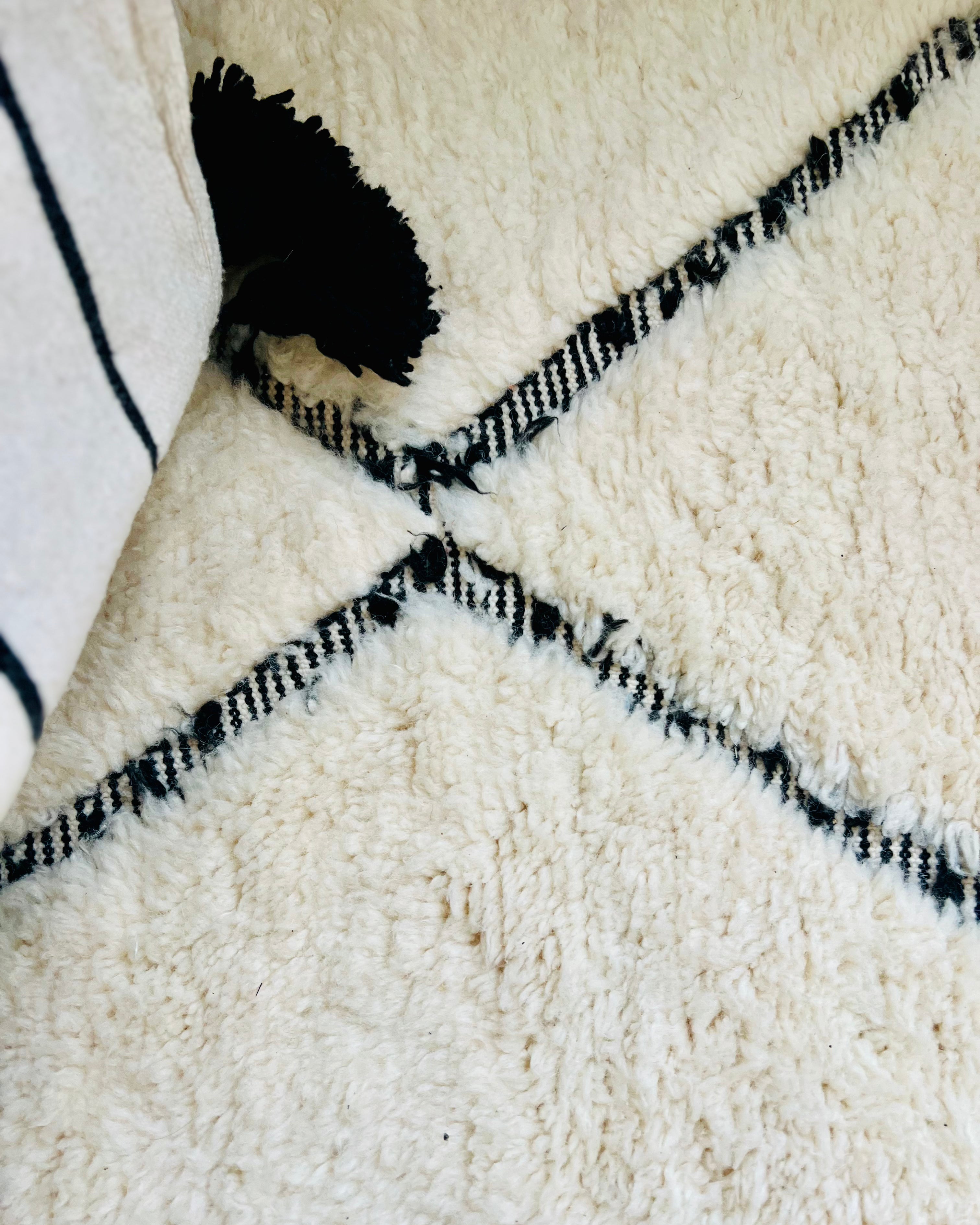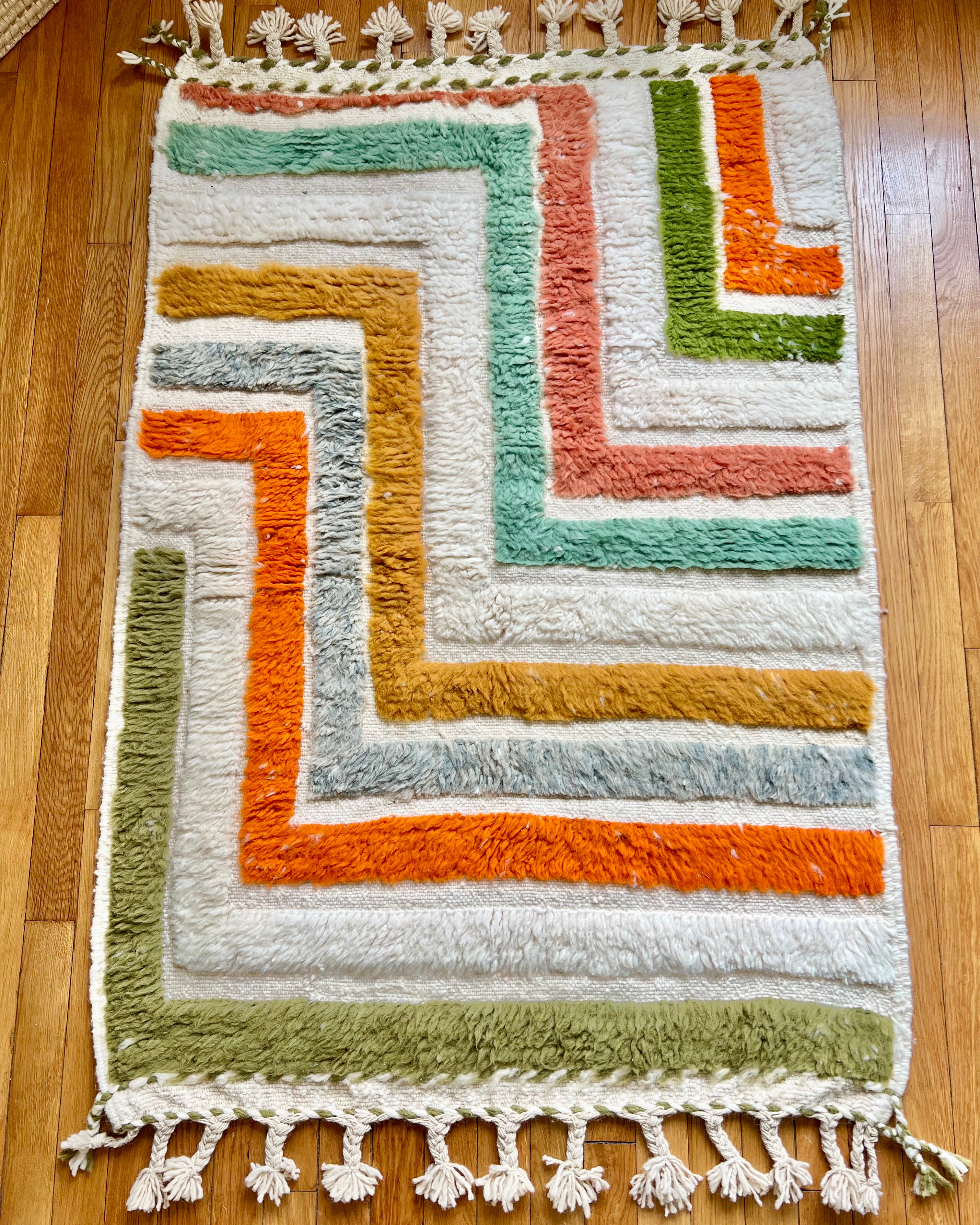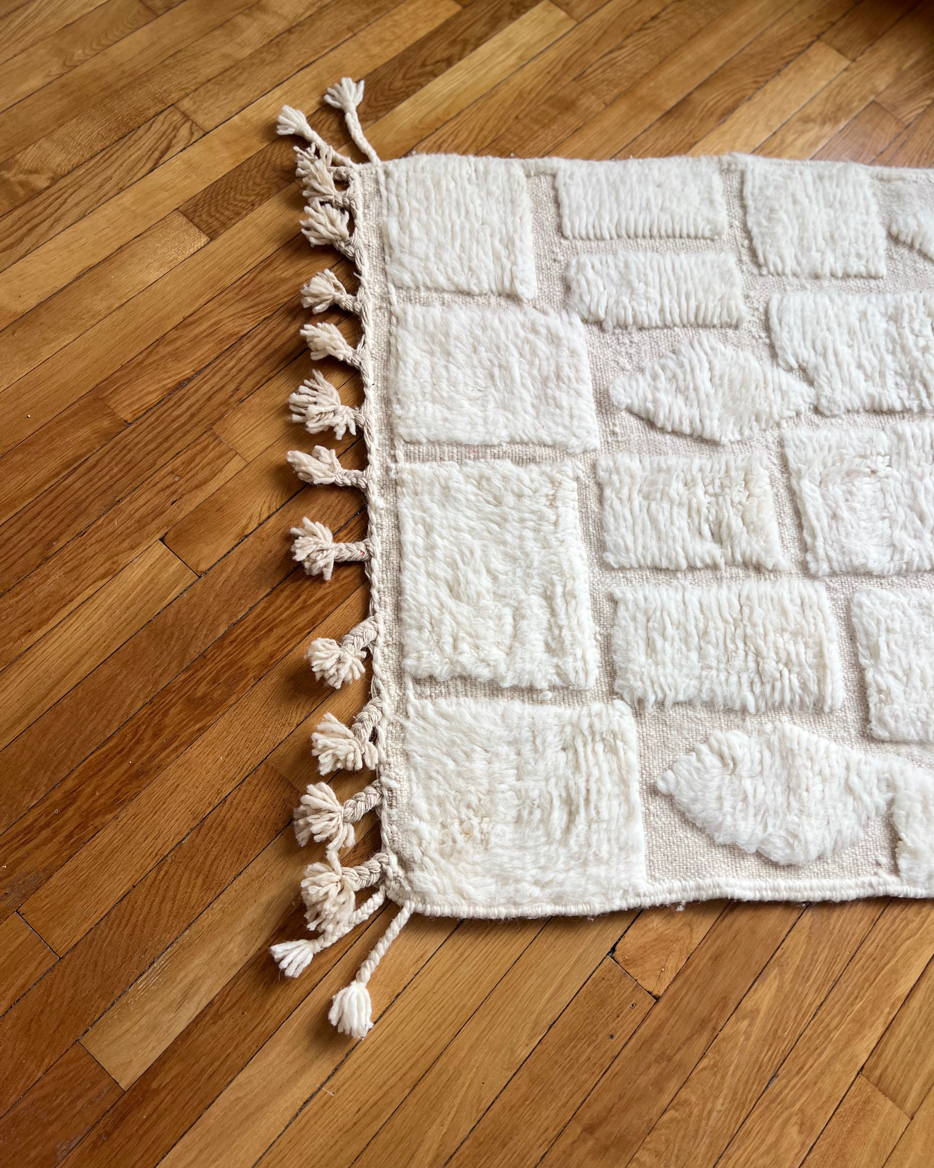 Je sélectionne personnellement chaque tapis en collaboration avec un artisan local. Cette démarche garantit des créations uniques, authentiques et respectueuses du travail artisanal.
