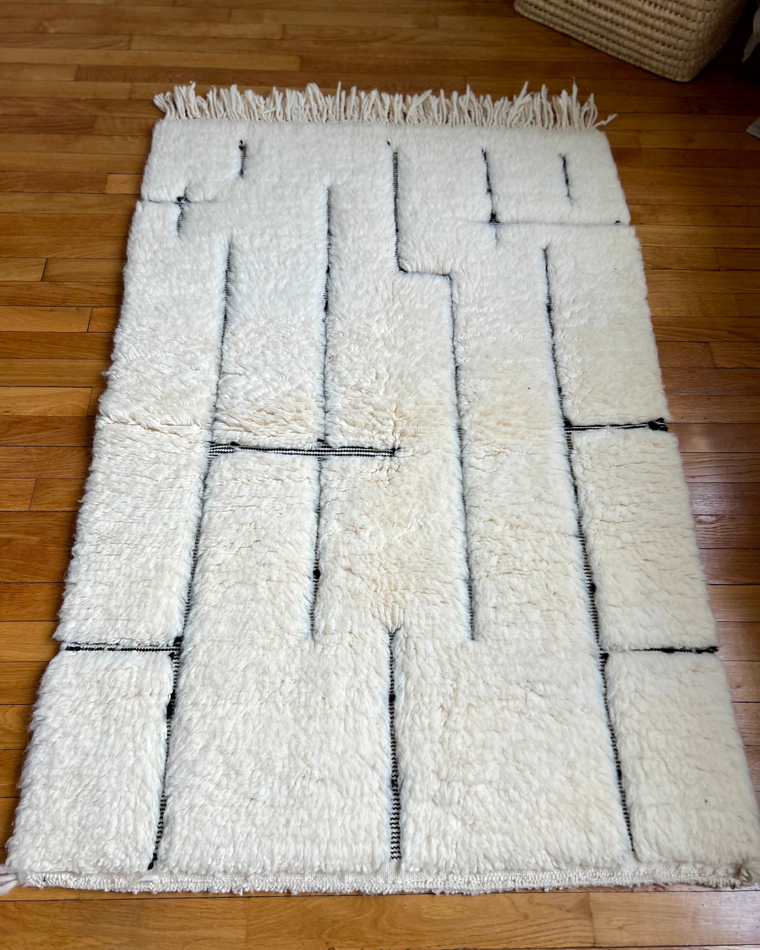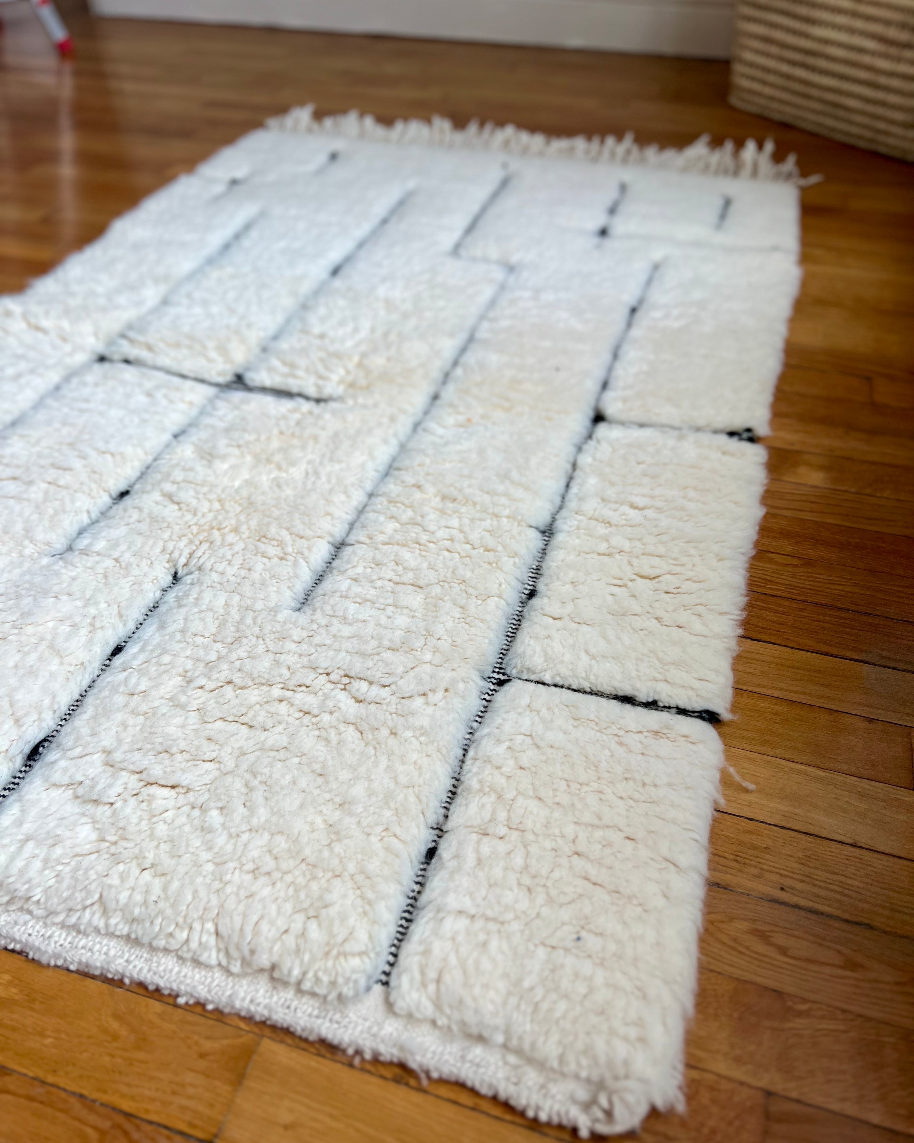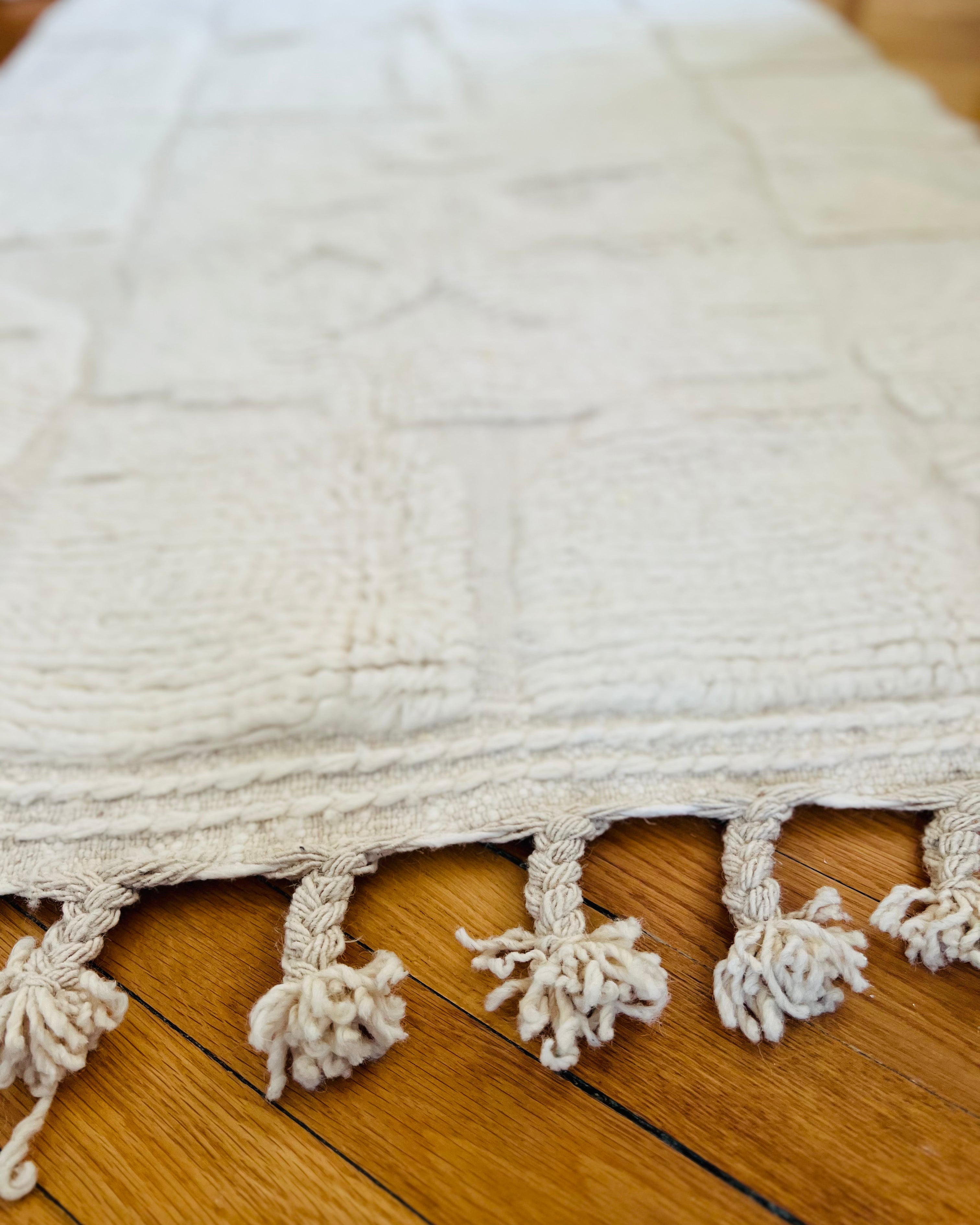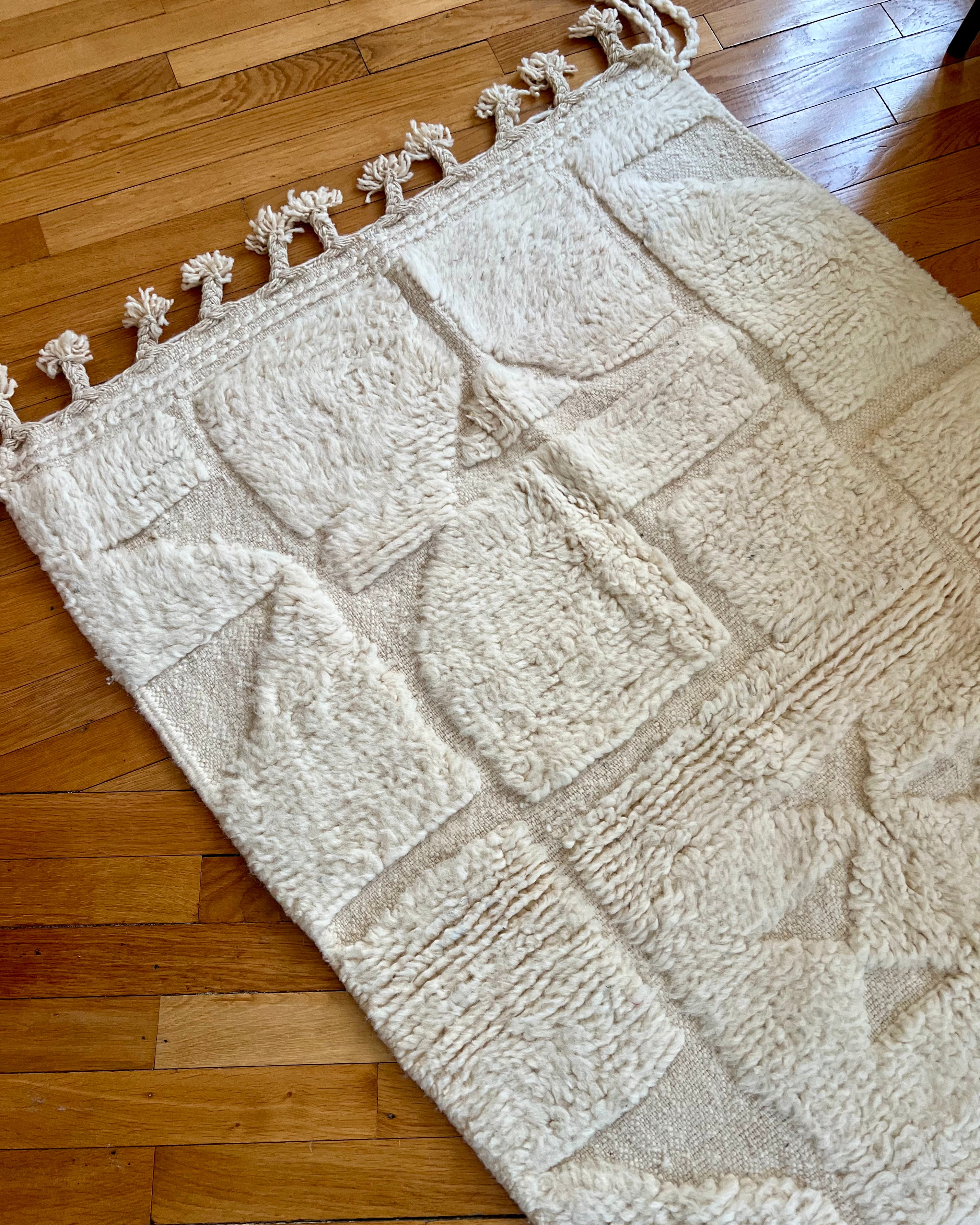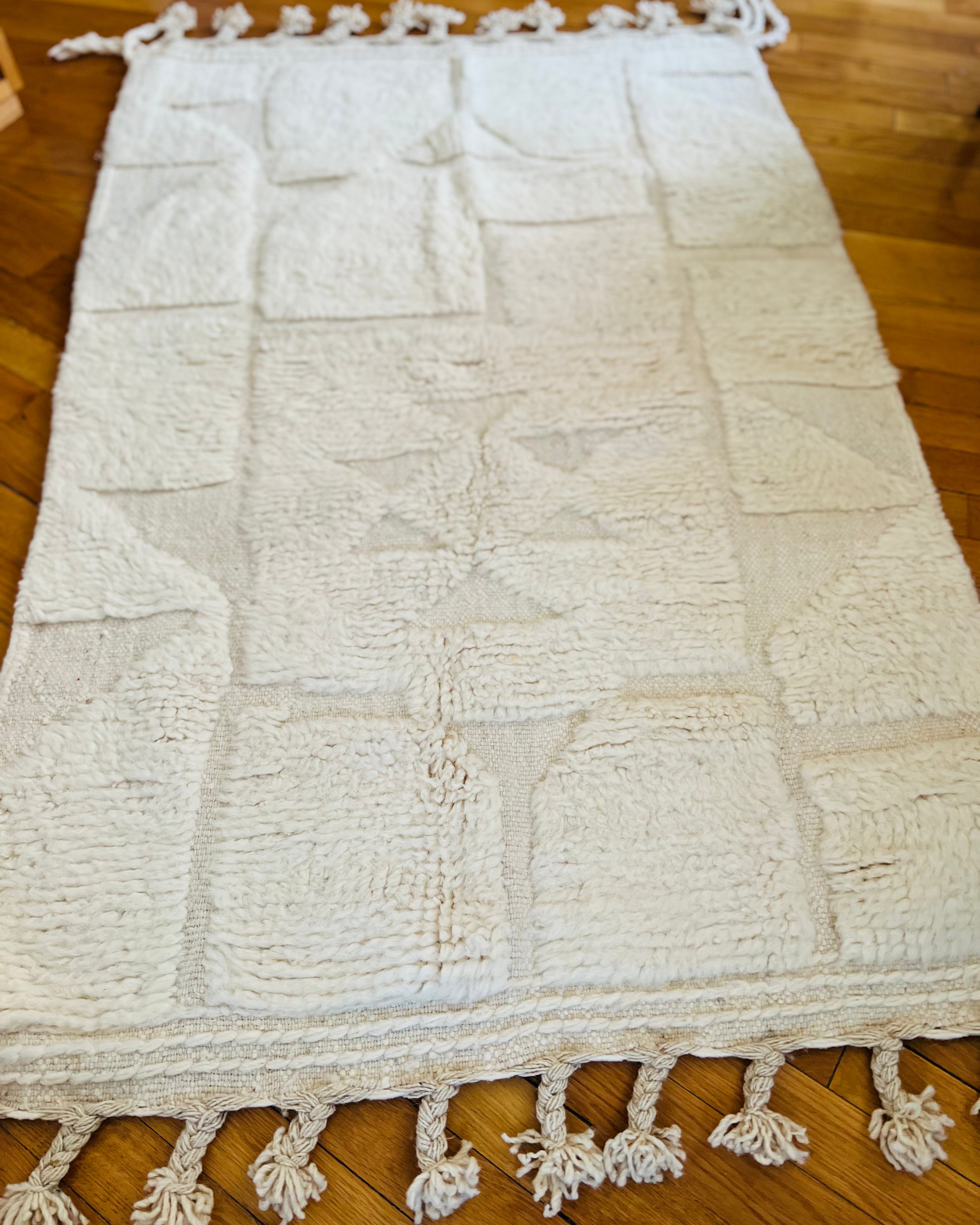 Je sélectionne personnellement chaque tapis en collaboration avec un artisan local. Cette démarche garantit des créations uniques, authentiques et respectueuses du travail artisanal.